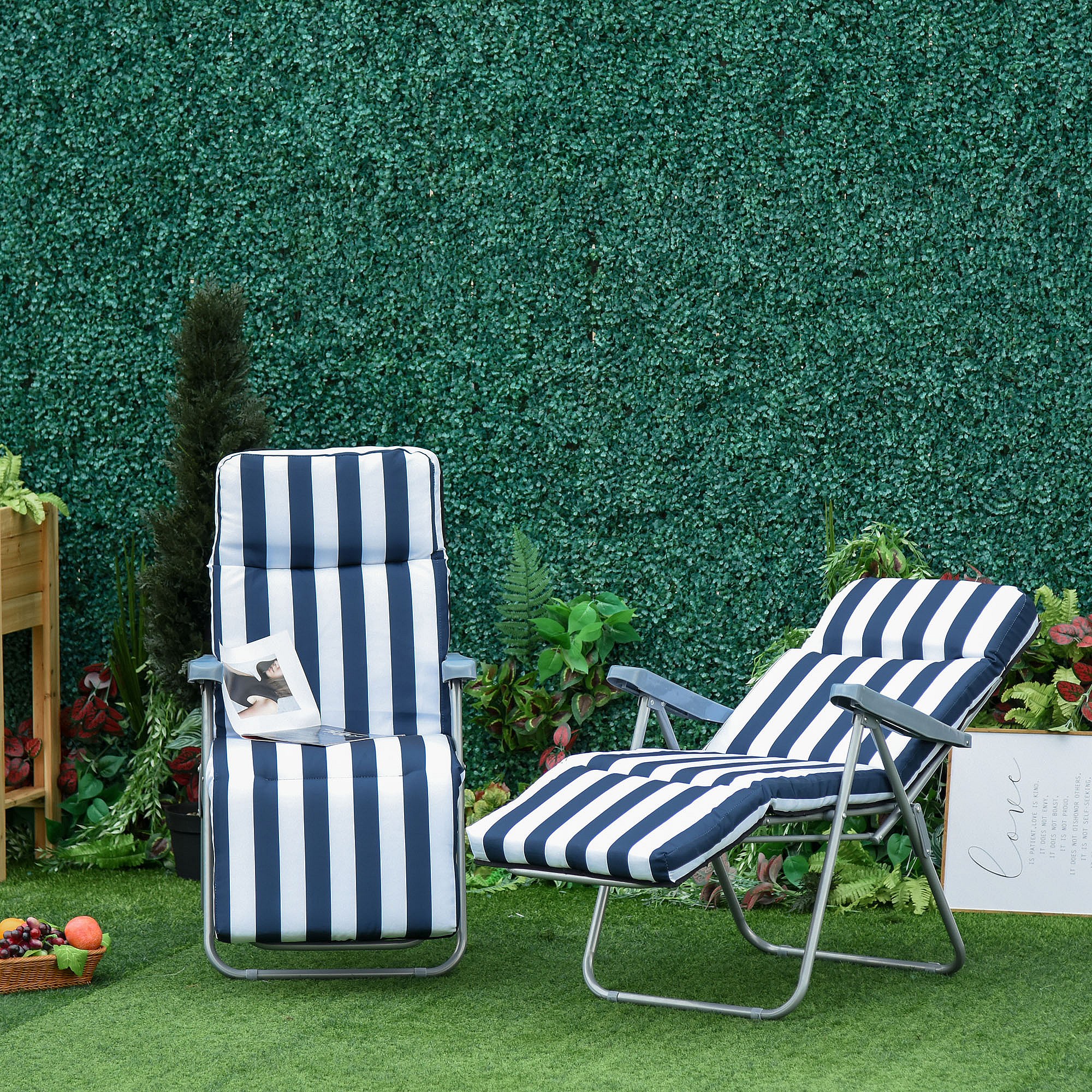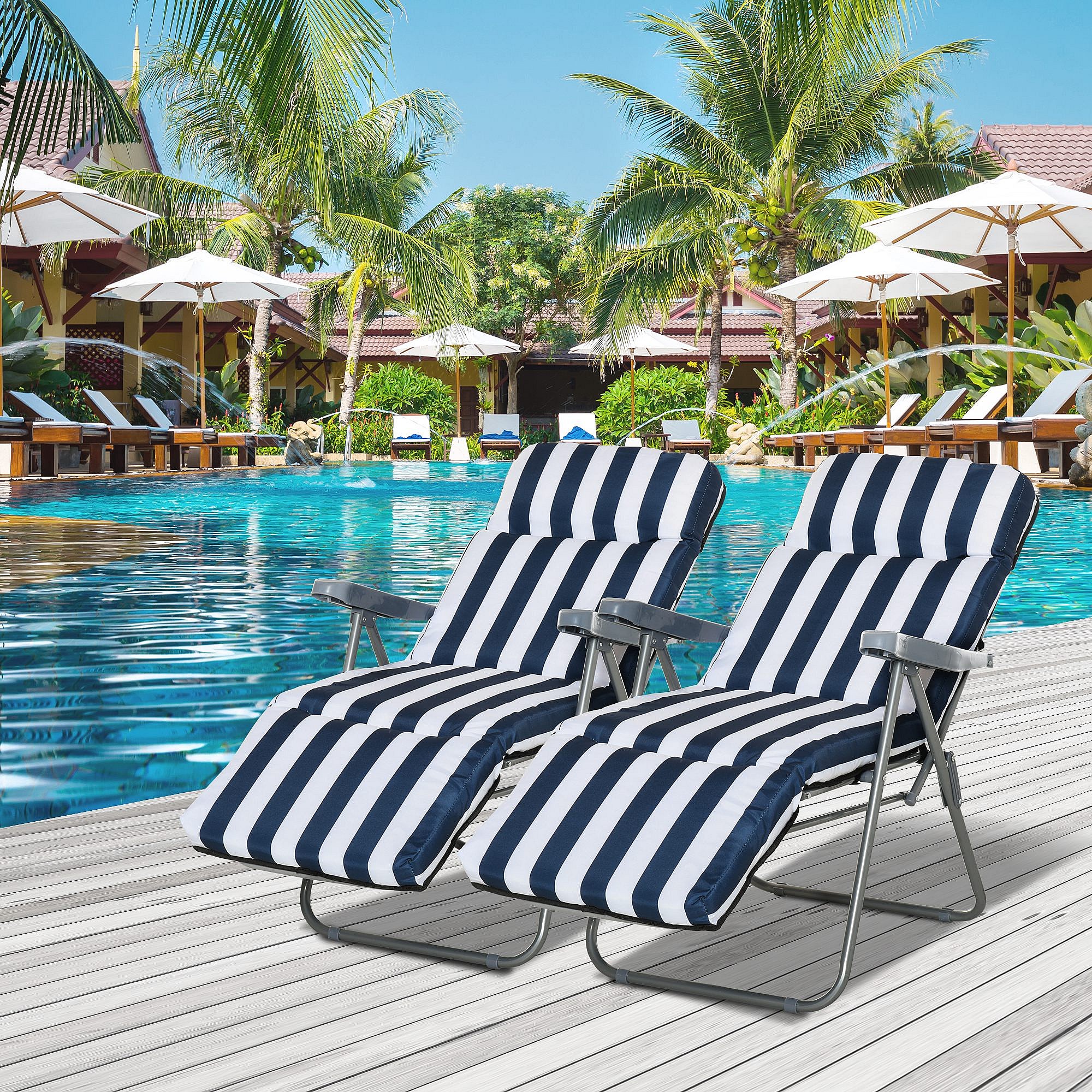 Lot de 2 chaise longue bain de soleil adjustable pliable transat lit de jardin en acier bleu + blanc