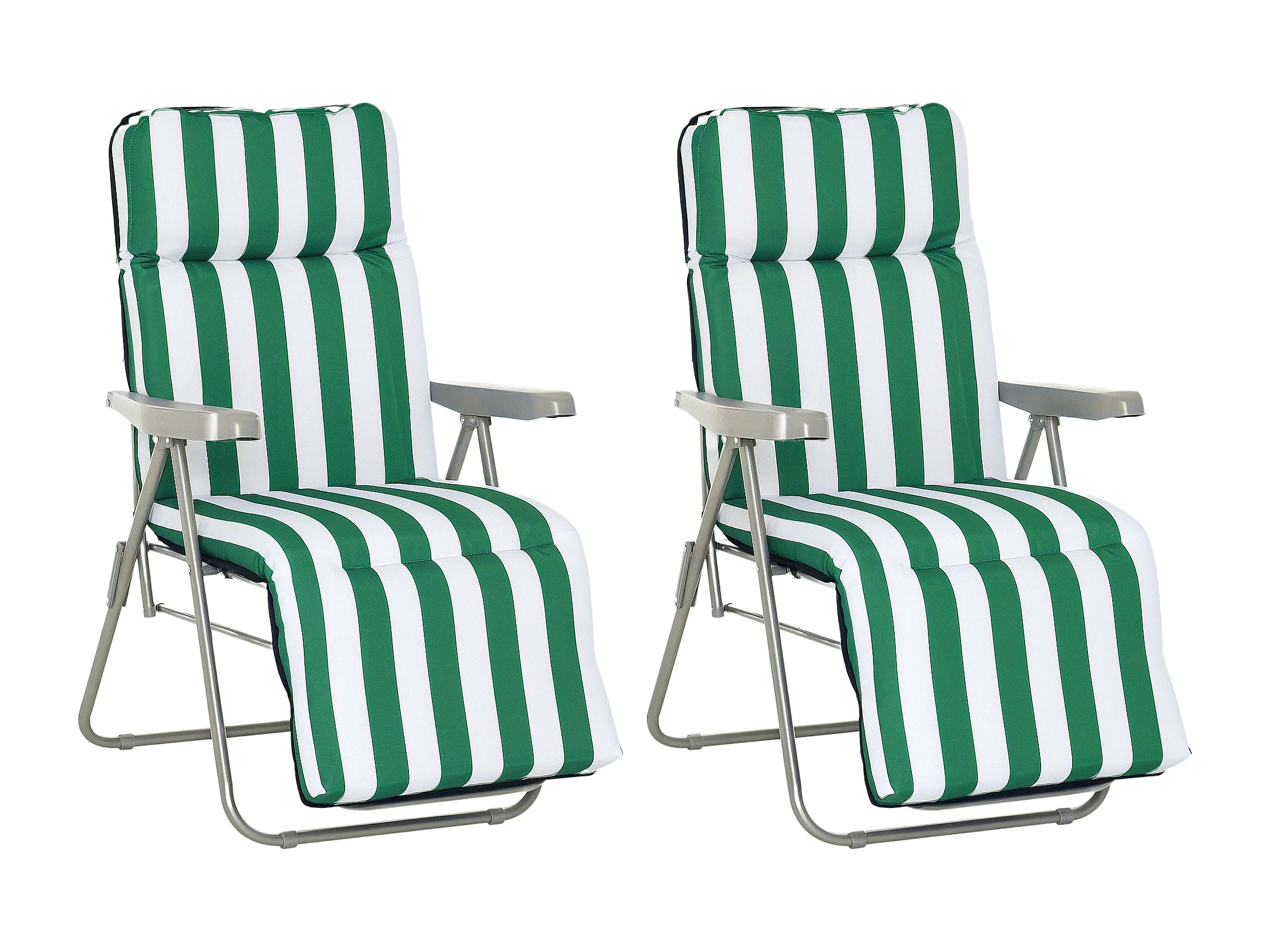 Lot de 2 chaise longue bain de soleil adjustable pliable transat lit de jardin en acier vert + blanc