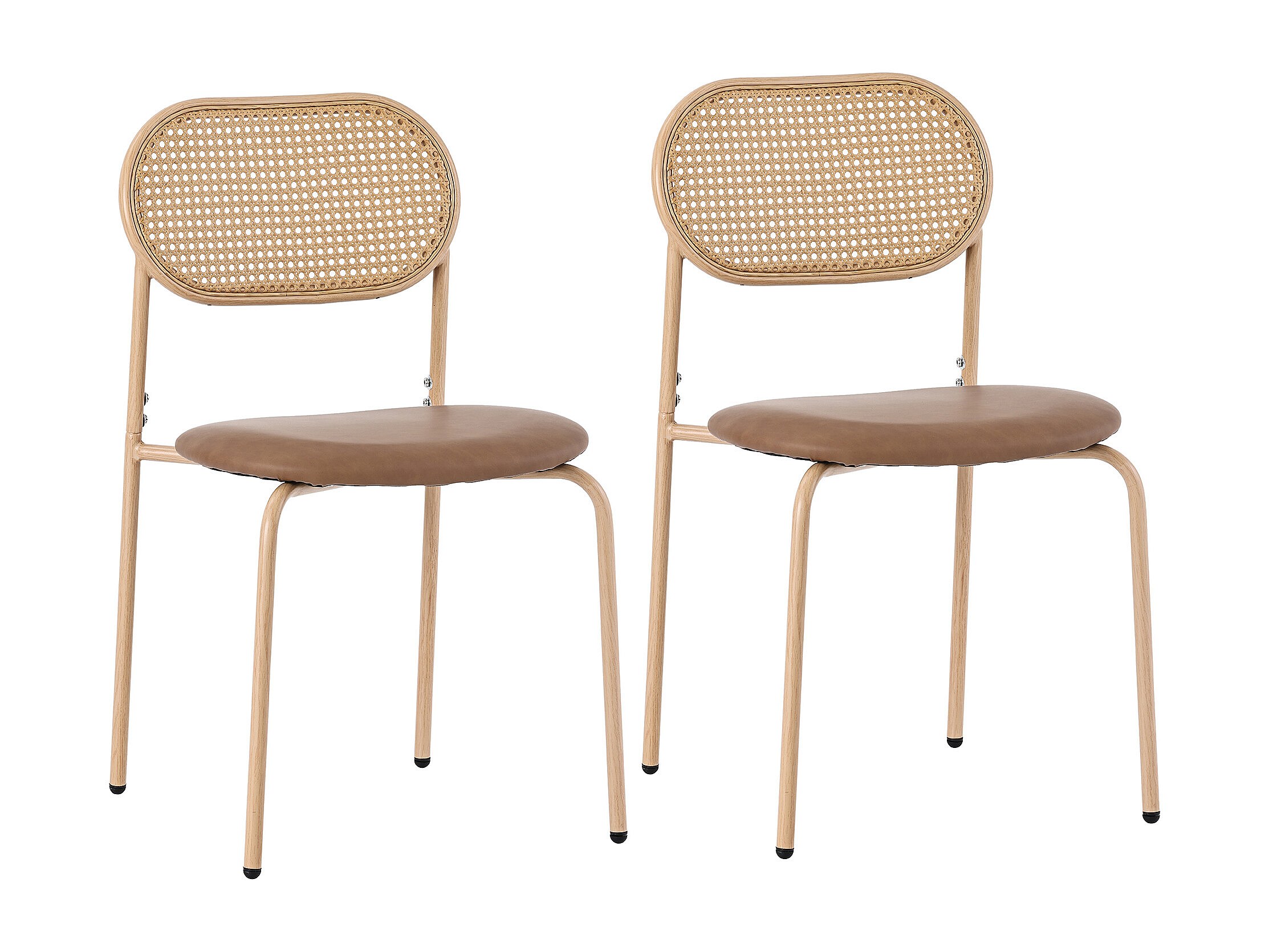 Lot de 2 chaises à manger en similicuir avec dossier en rotin - pieds en métal - marron