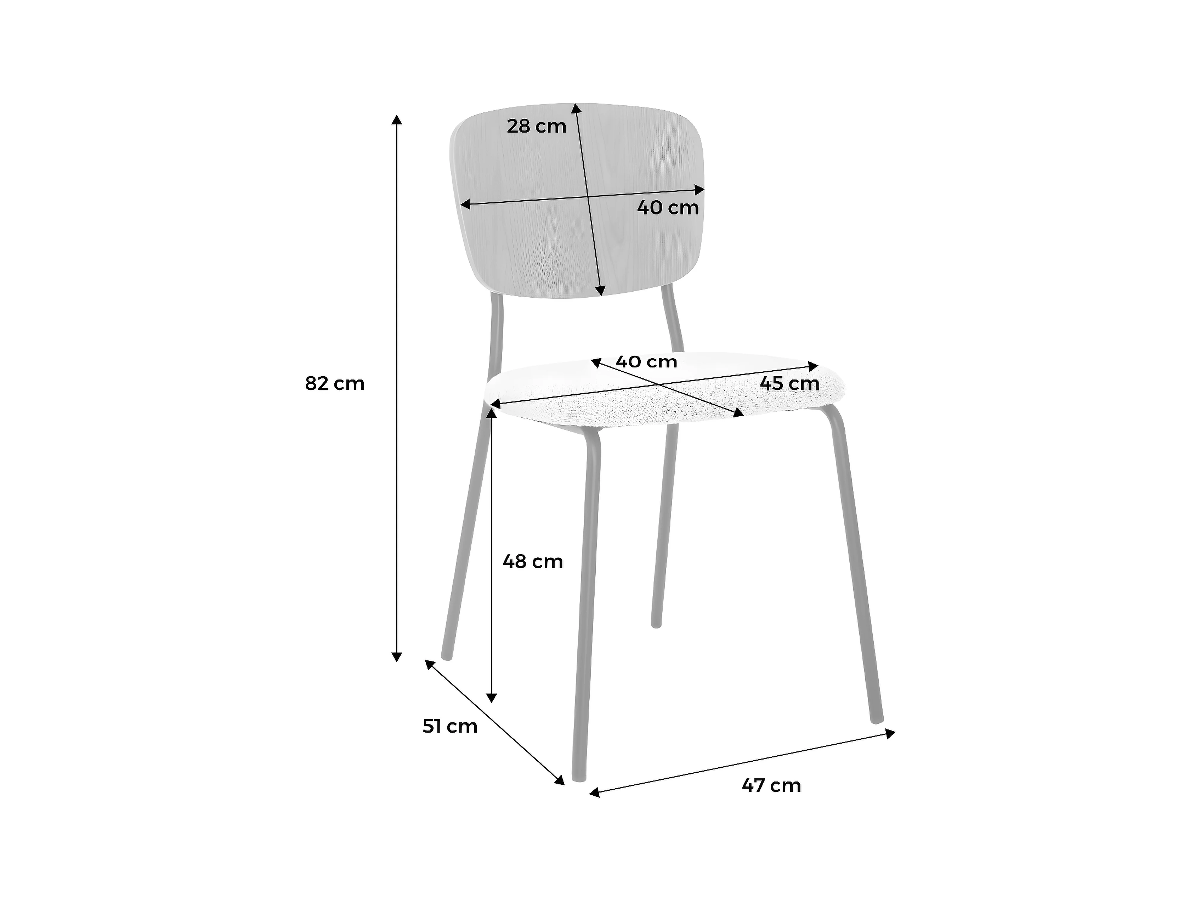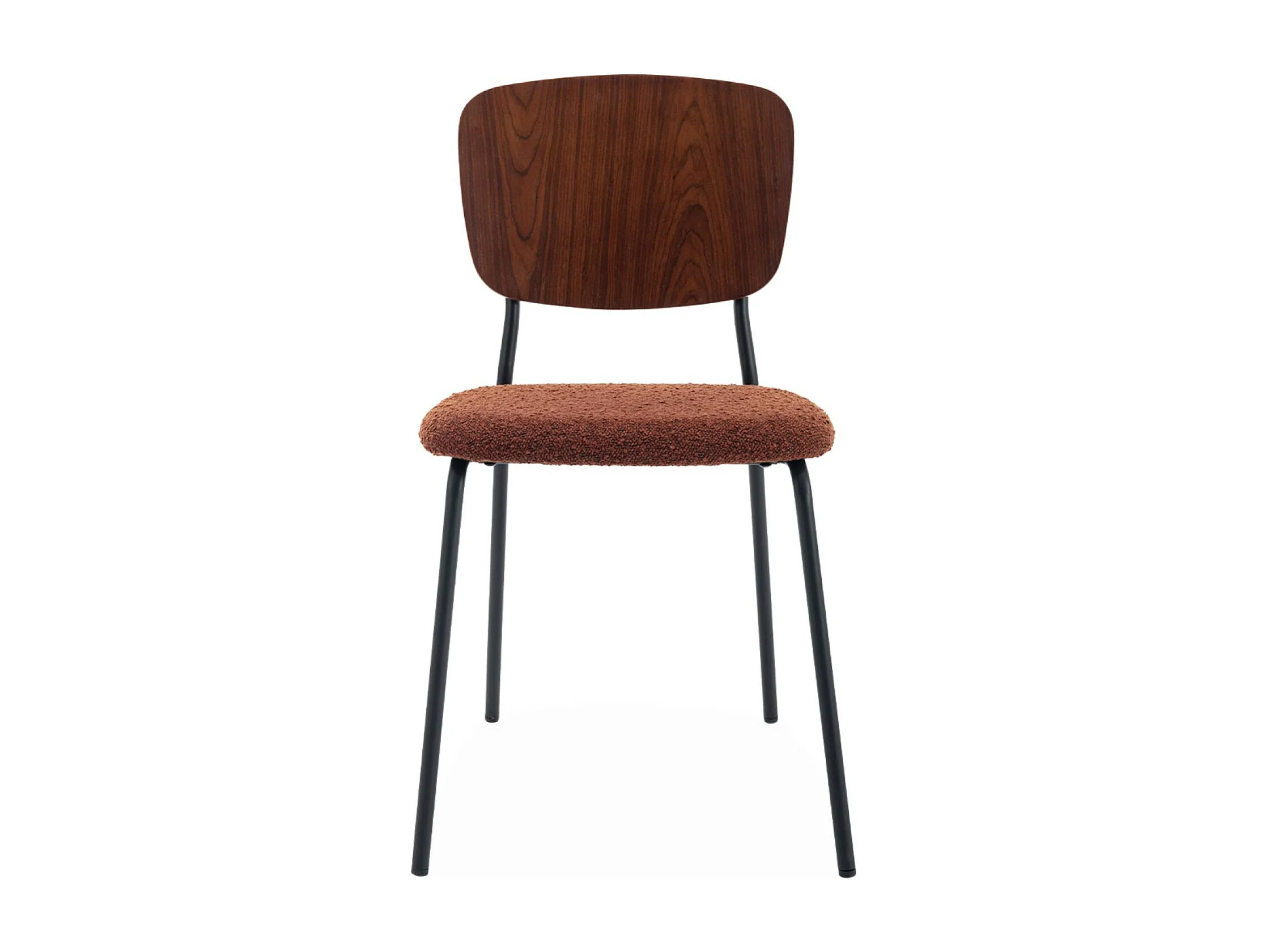 Lot de 2 chaises assise bouclette texturée terracotta. dossier bois de peuplier courbé. pieds en métal noir mat