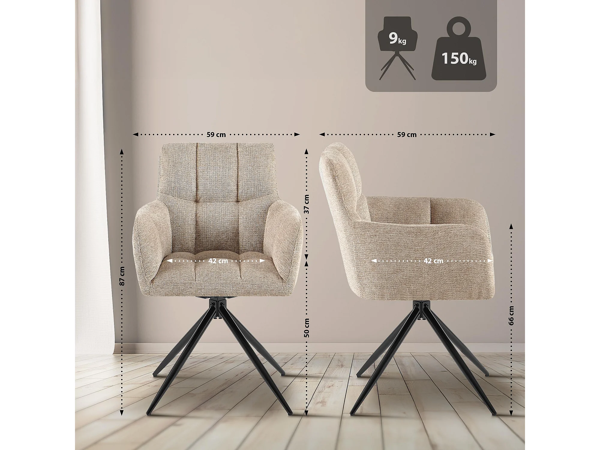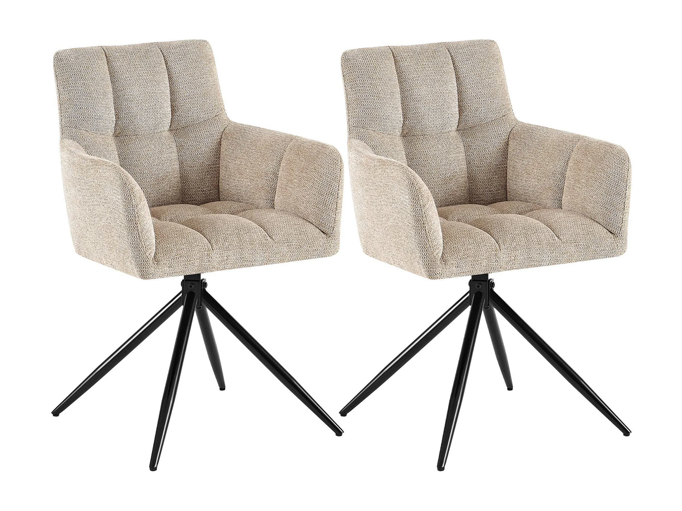 Lot de 2 chaises avec accoudoirs - Tissu - Marron clair - Jonah