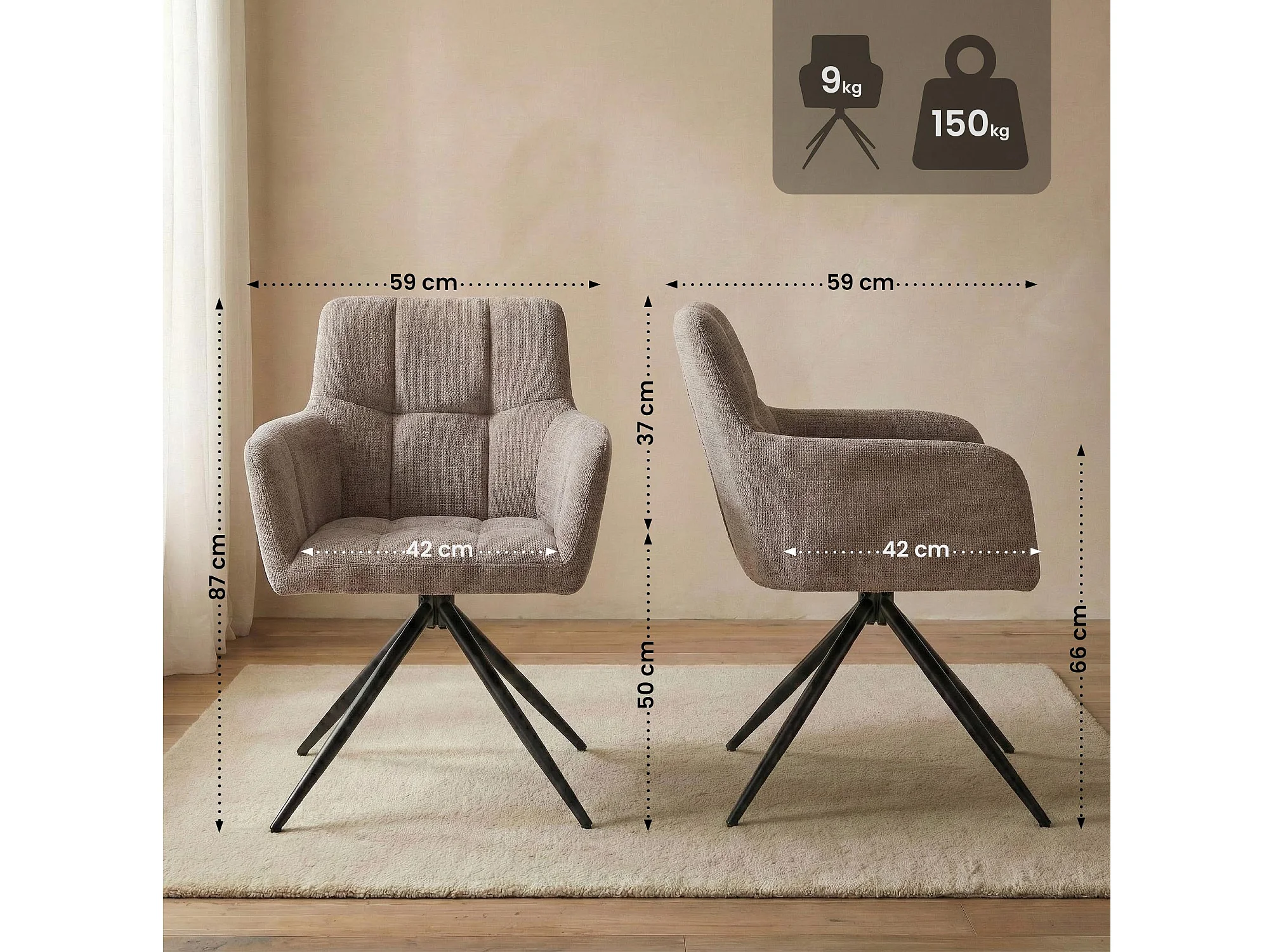 Lot de 2 chaises avec accoudoirs - Tissu - Taupe - Jonah