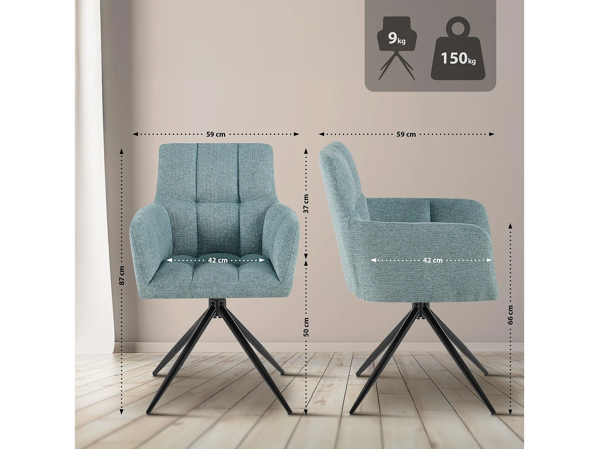 Lot de 2 chaises avec accoudoirs - Tissu - Turquoise - Jonah
