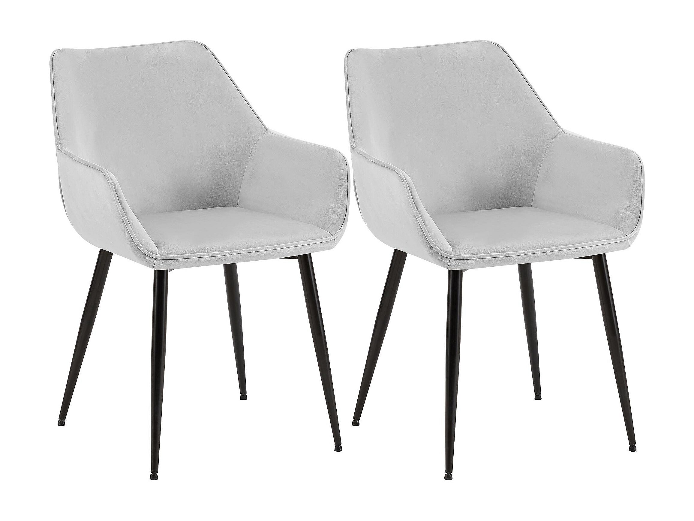 Lot de 2 chaises avec accoudoirs - Velours - Gris clair - Luena