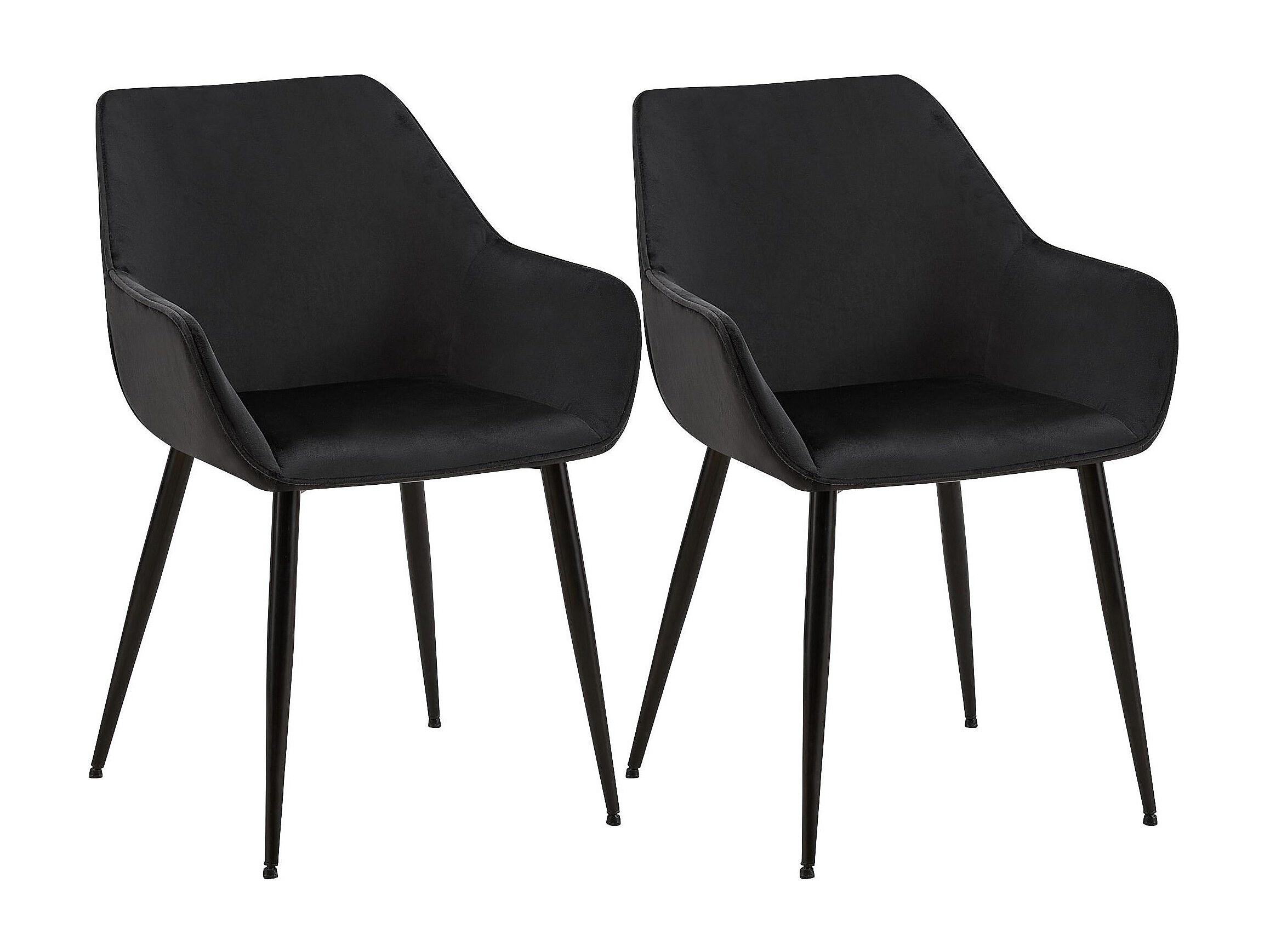 Lot de 2 chaises avec accoudoirs - Velours - Noir - Luena