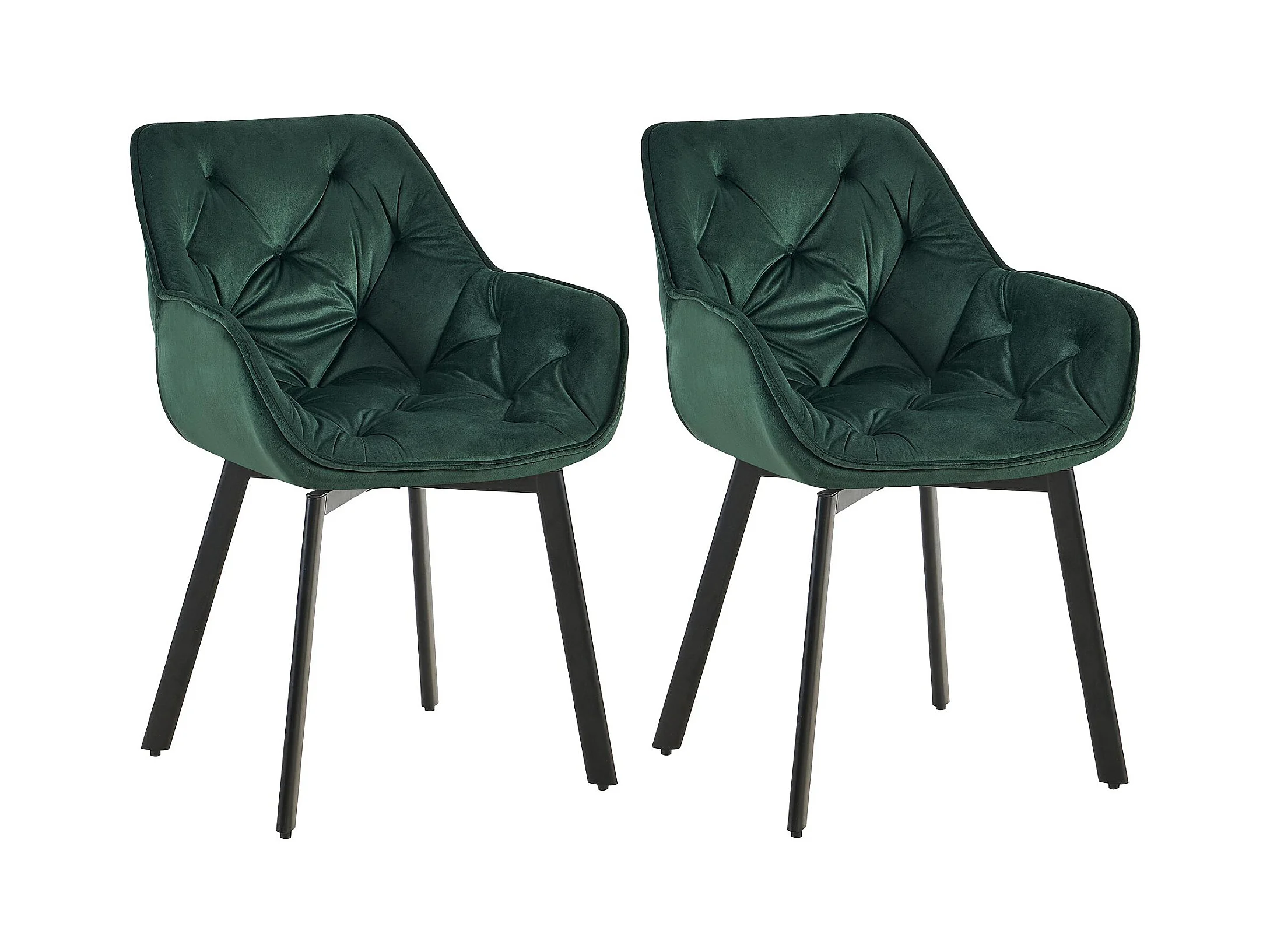 Lot de 2 chaise salle à manger - Velours - Vert - Saranda