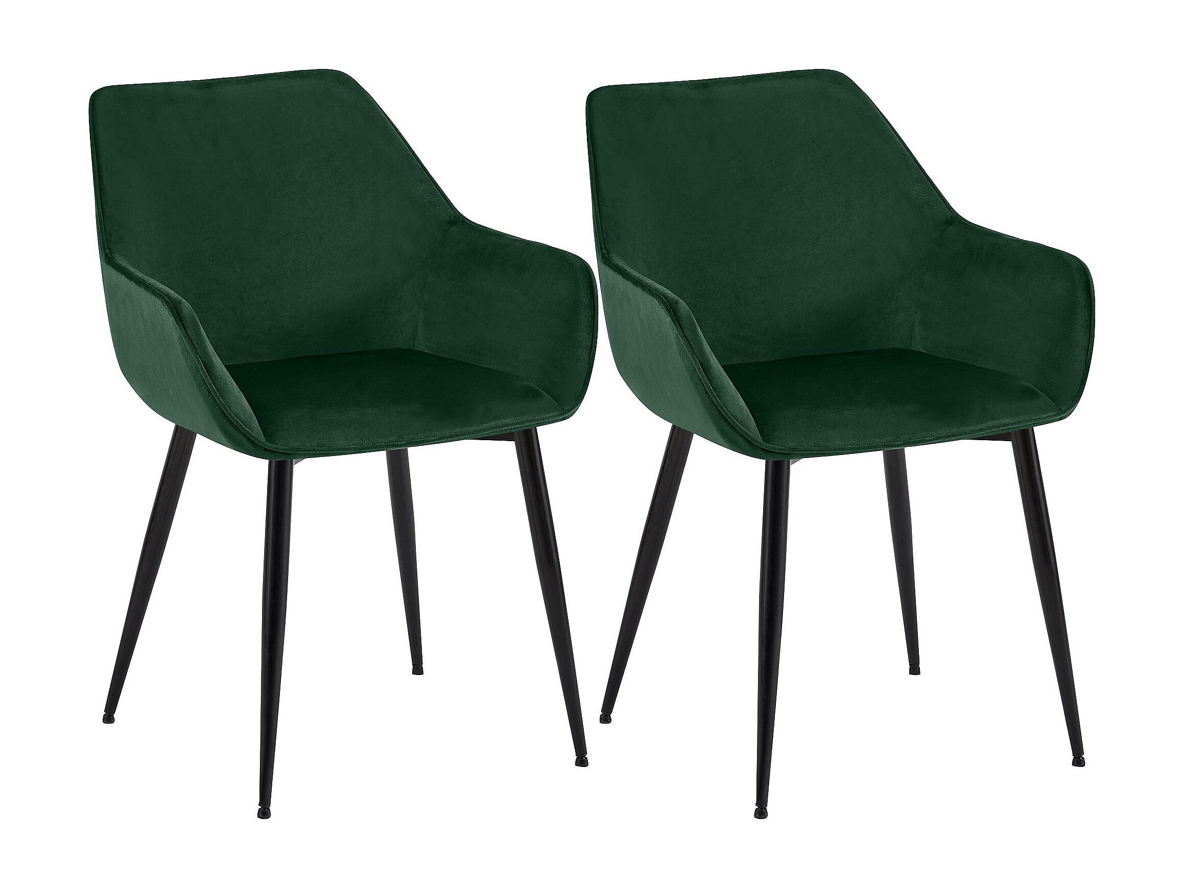 Lot de 2 chaises avec accoudoirs - Velours - Vert - Luena
