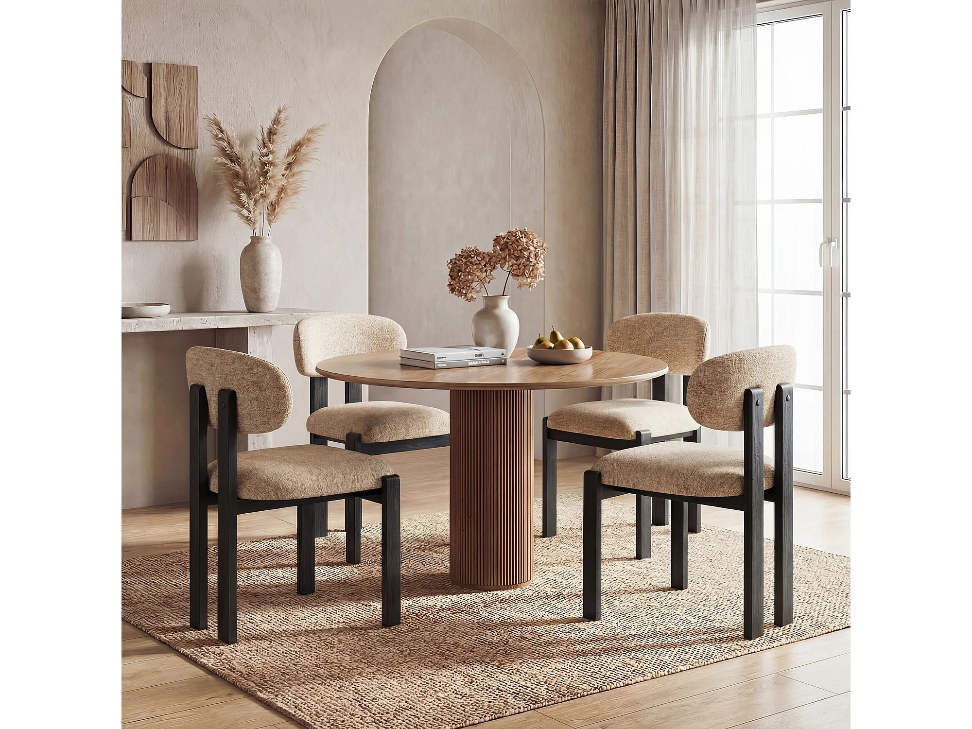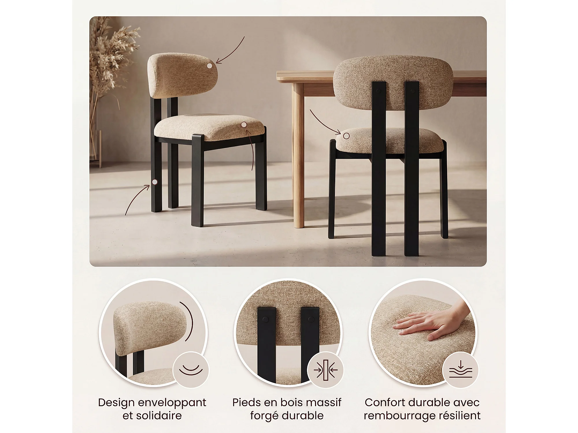 Lot de 2 chaises camel SMARTUE, revêtement en tissu chenille, assise épaisse, dossier incurvé, pieds noirs en bois d’hévéa