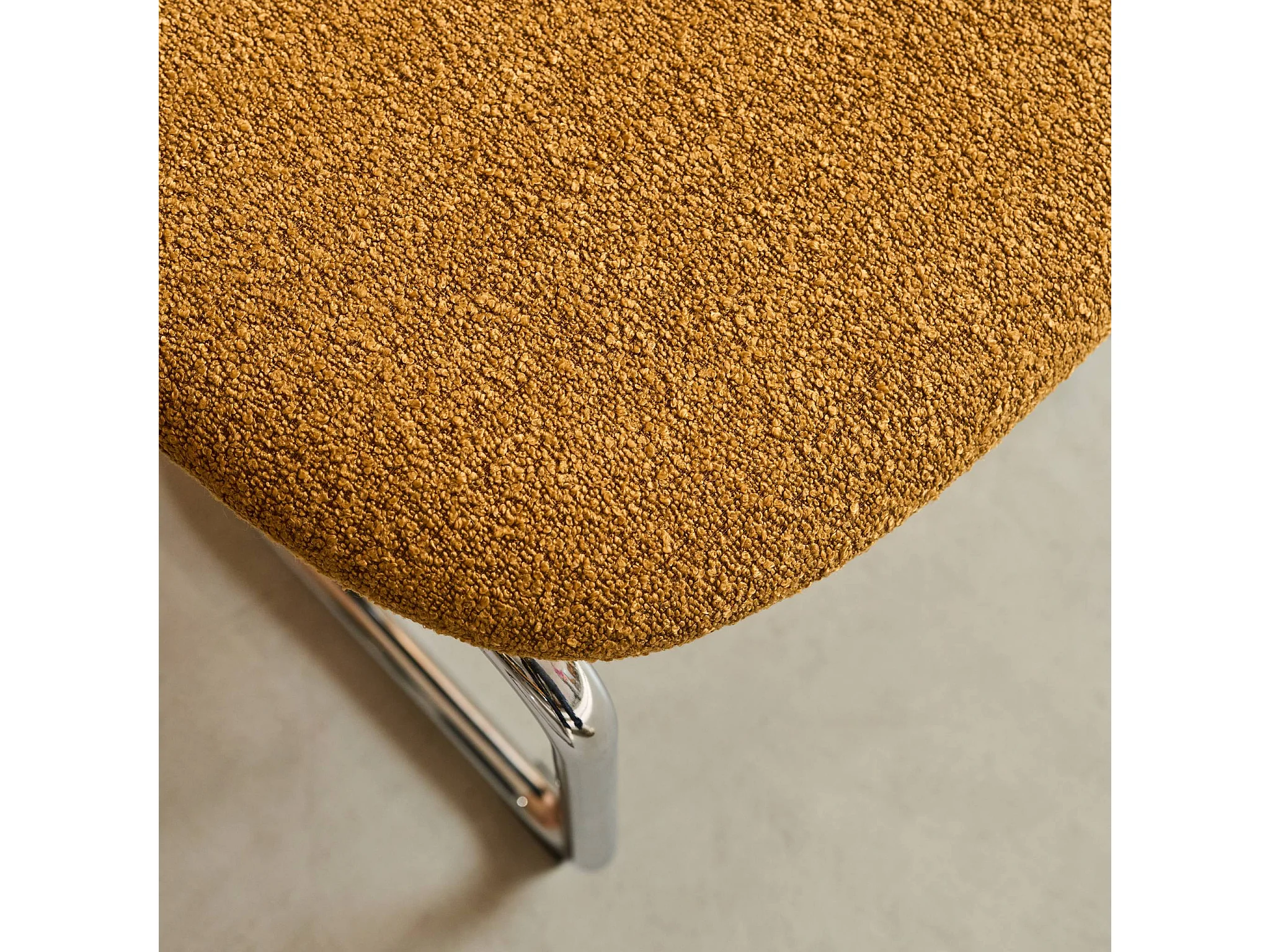 Lot de 2 chaises cantilever arrondie métal. bouclette texturée moutarde et pieds chromés - L 47 x P 54.5 x H 81cm - Maloa
