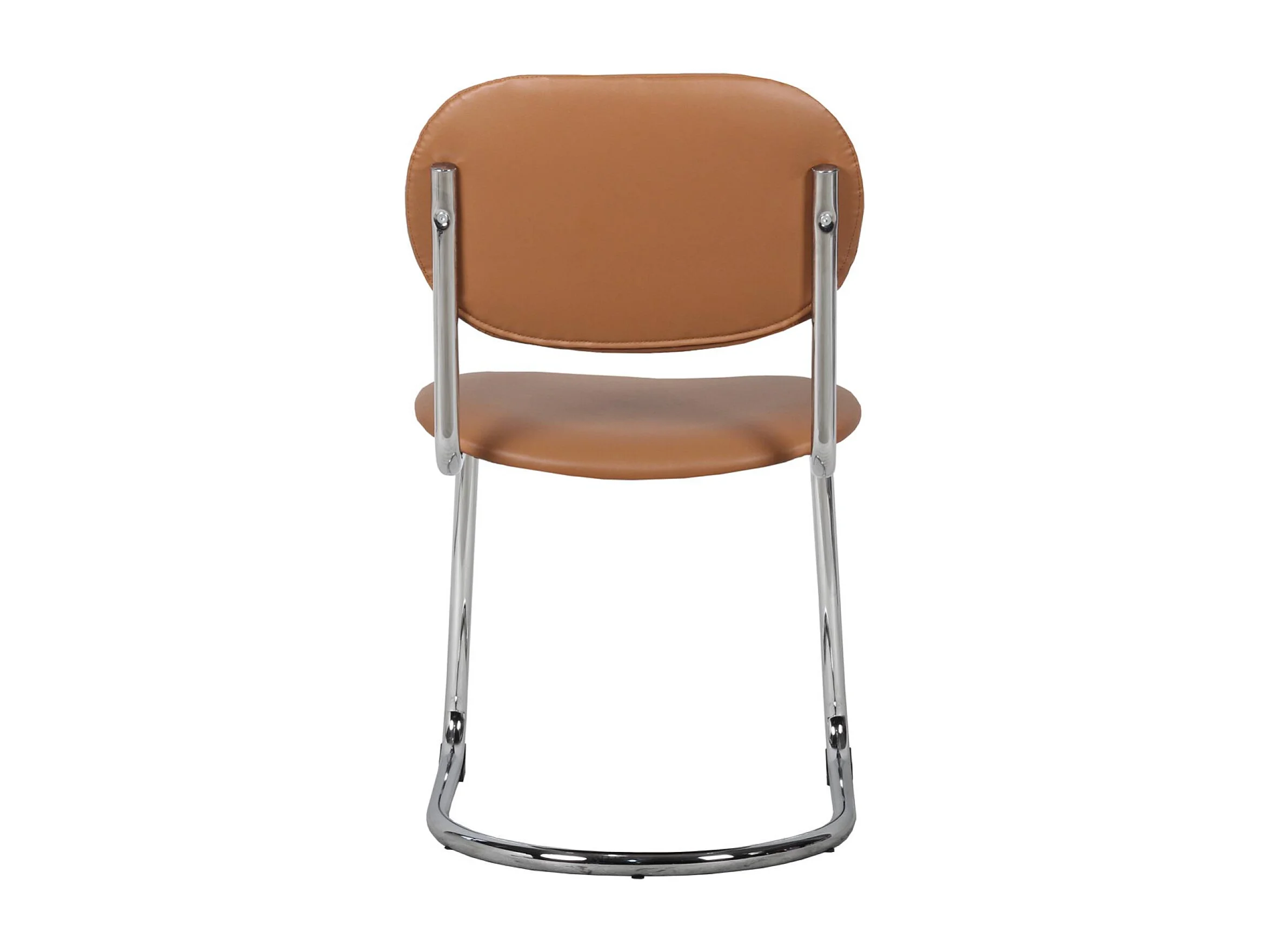 Lot de 2 chaises cantilever arrondie métal. similicuir marron et pieds chromés - L 47 x P 54.5 x H 81cm - Maloa