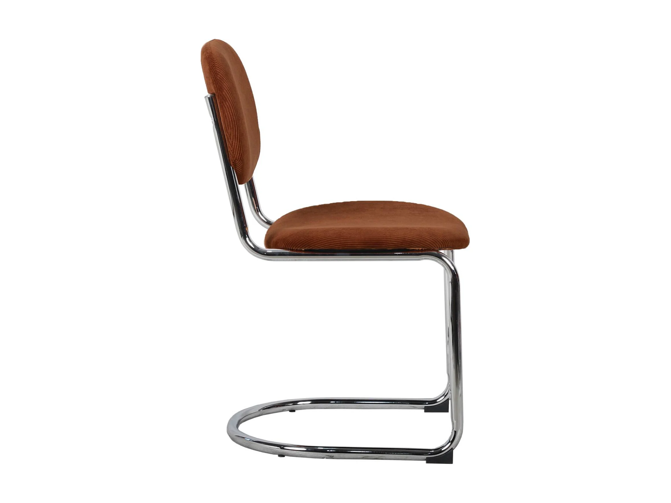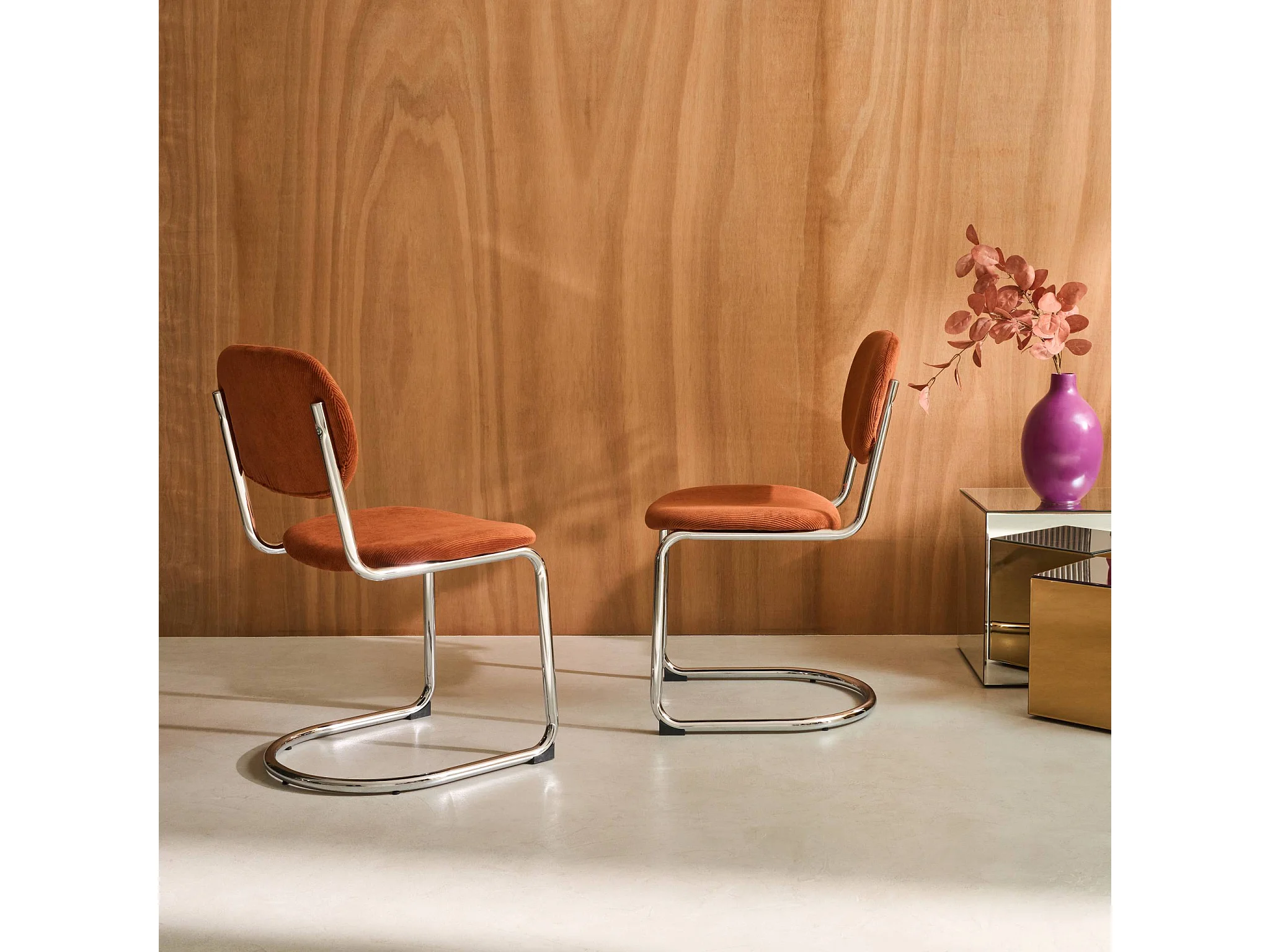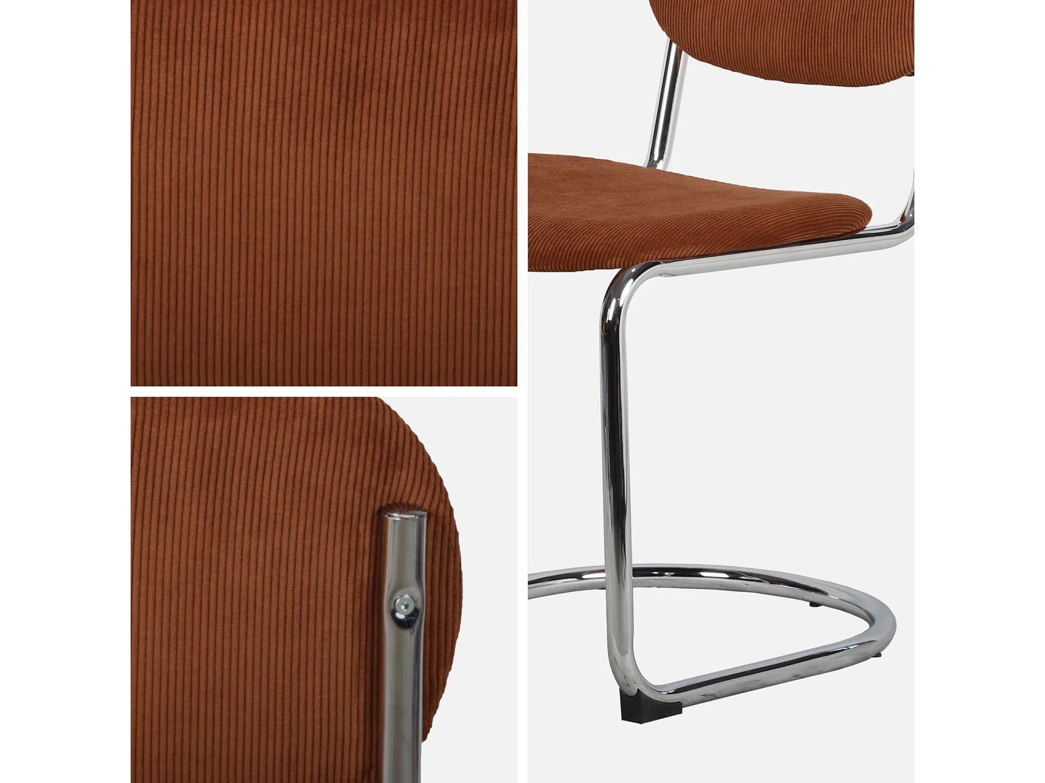 Lot de 2 chaises cantilever arrondie métal. velours côtelé camel et pieds chromés - L 47 x P 54.5 x H 81cm - Maloa