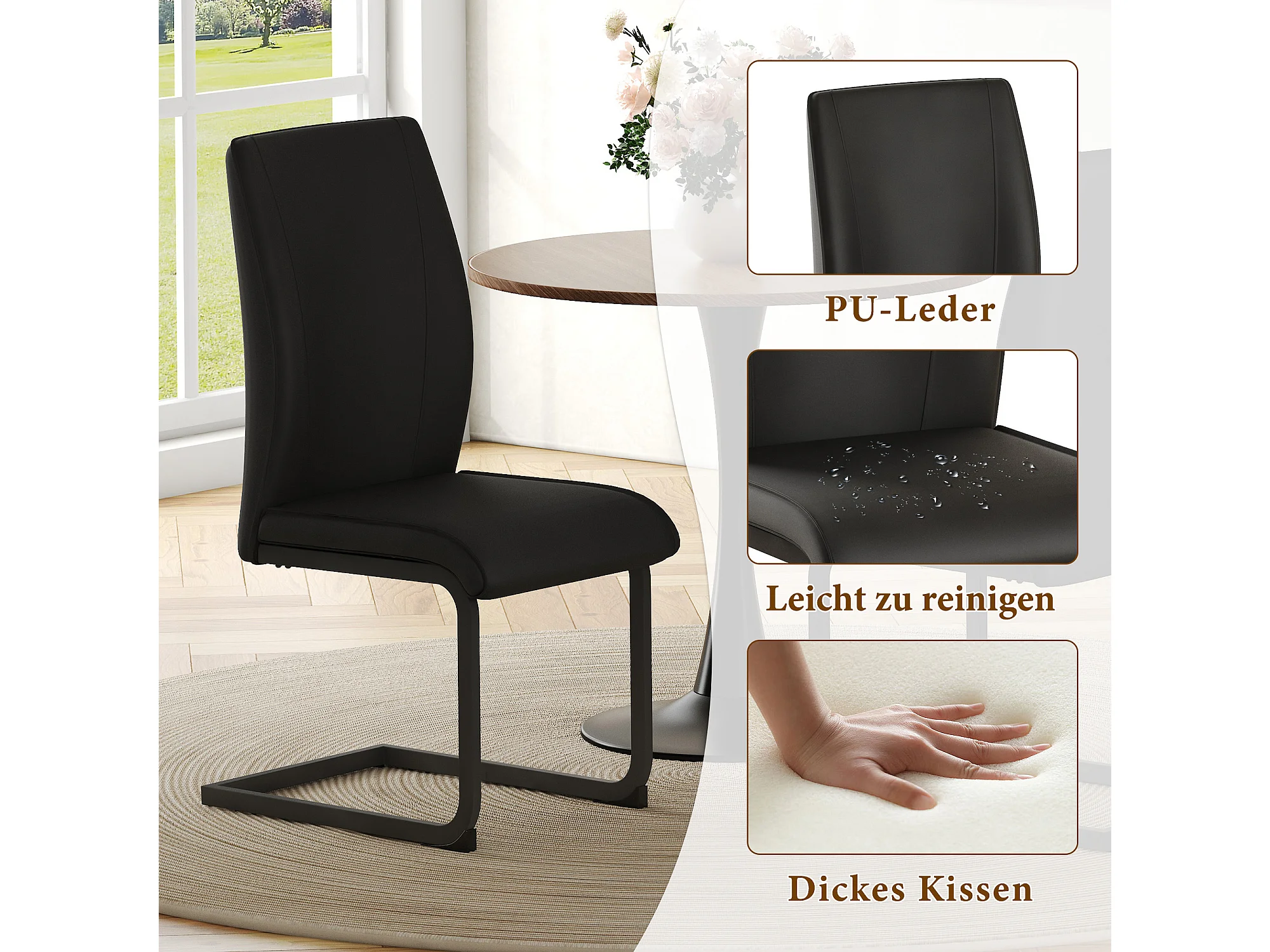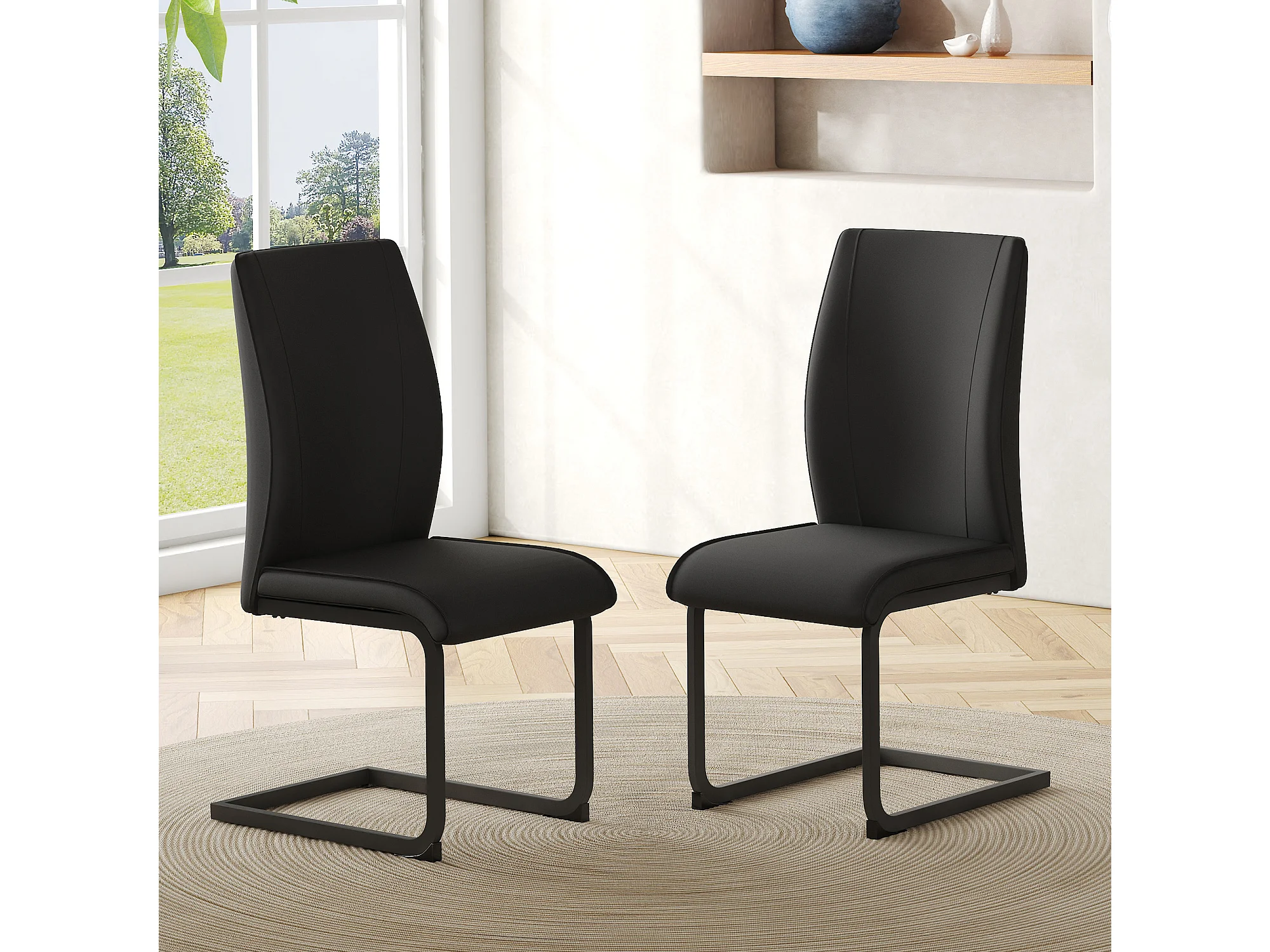Lot de 2 chaises cantilever en simili cuir noir - cadre en métal noir