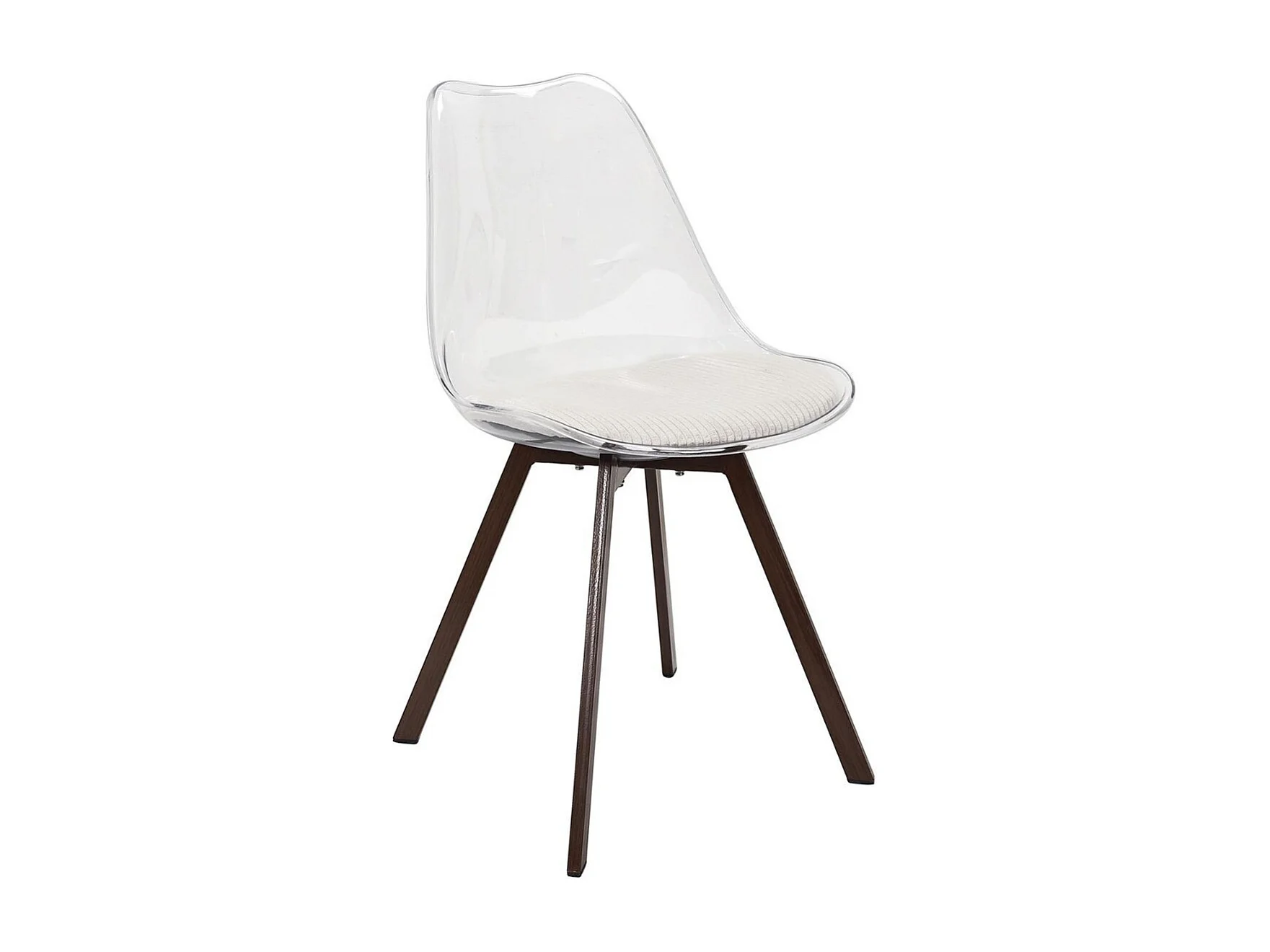 Lot de 2 chaises coque transparente coussin assise en velours côtelé crème - MOARY