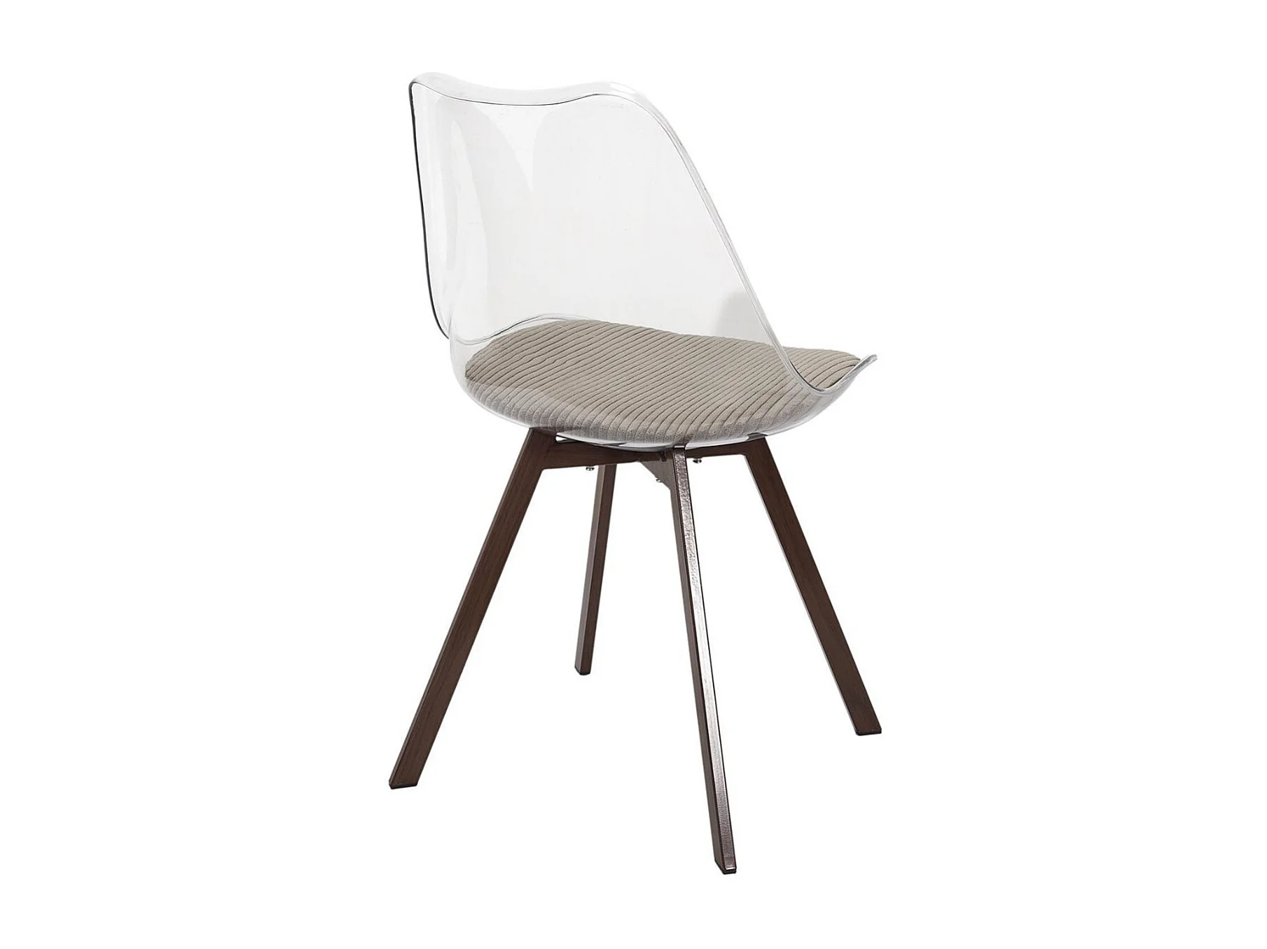 Lot de 2 chaises coque transparente coussin assise en velours côtelé taupe - MOARY