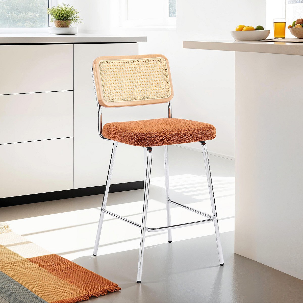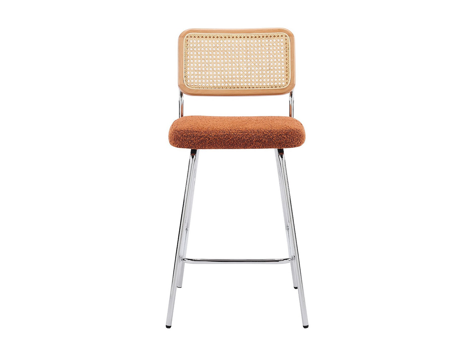 Lot de 2 chaises de bar en cannage et tissu bouclé rouille, piètement chromé - Muse