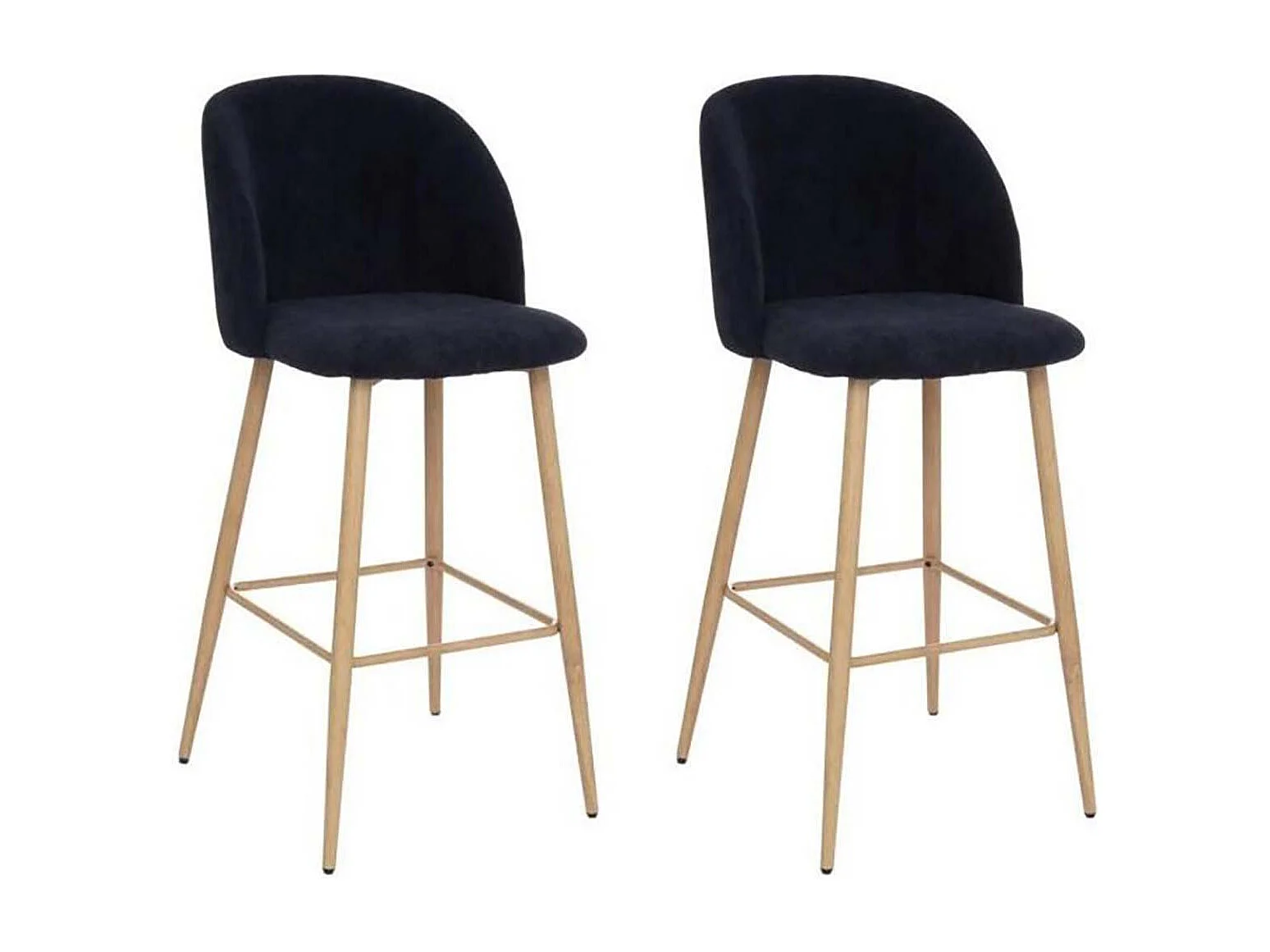 Lot de 2 chaises de bar en velours côtelé avec des pieds effet bois, coloris bleu encre - Longueur 48 x Profondeur 56 x Hauteur 106 cm