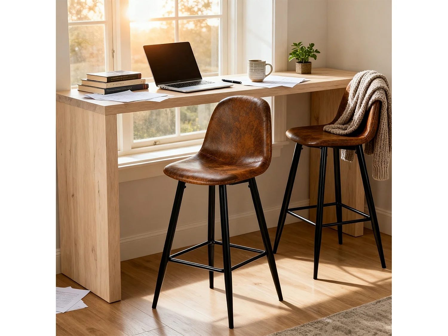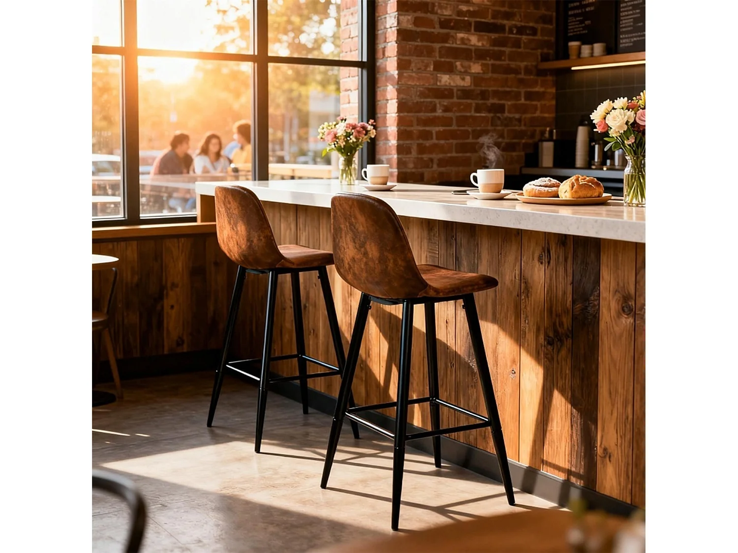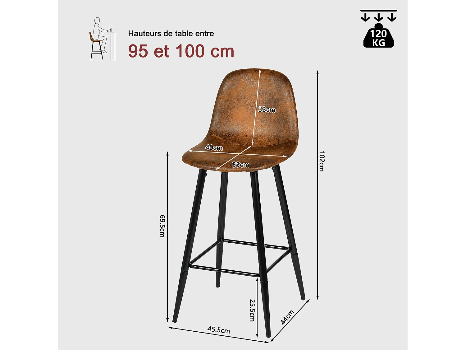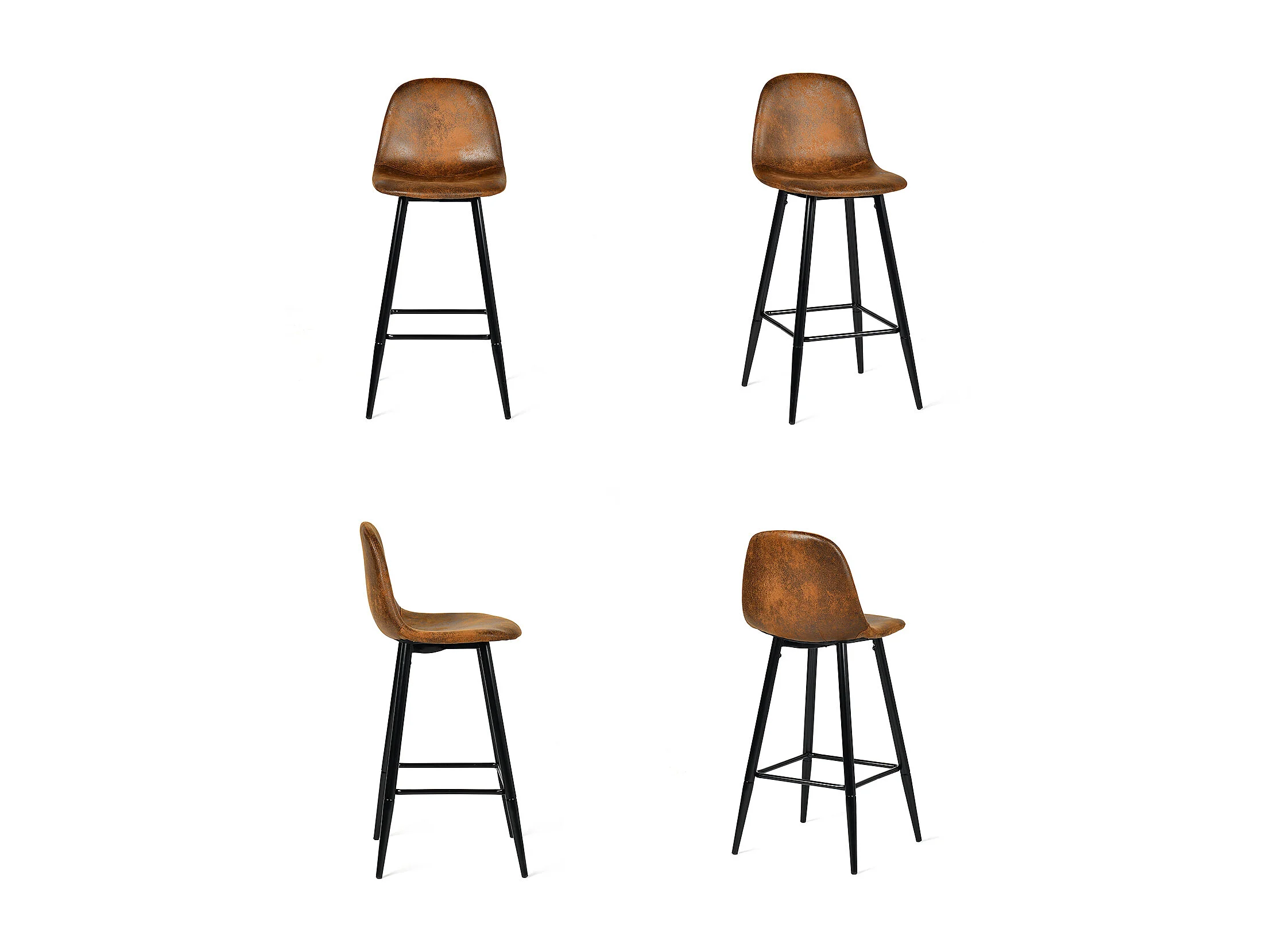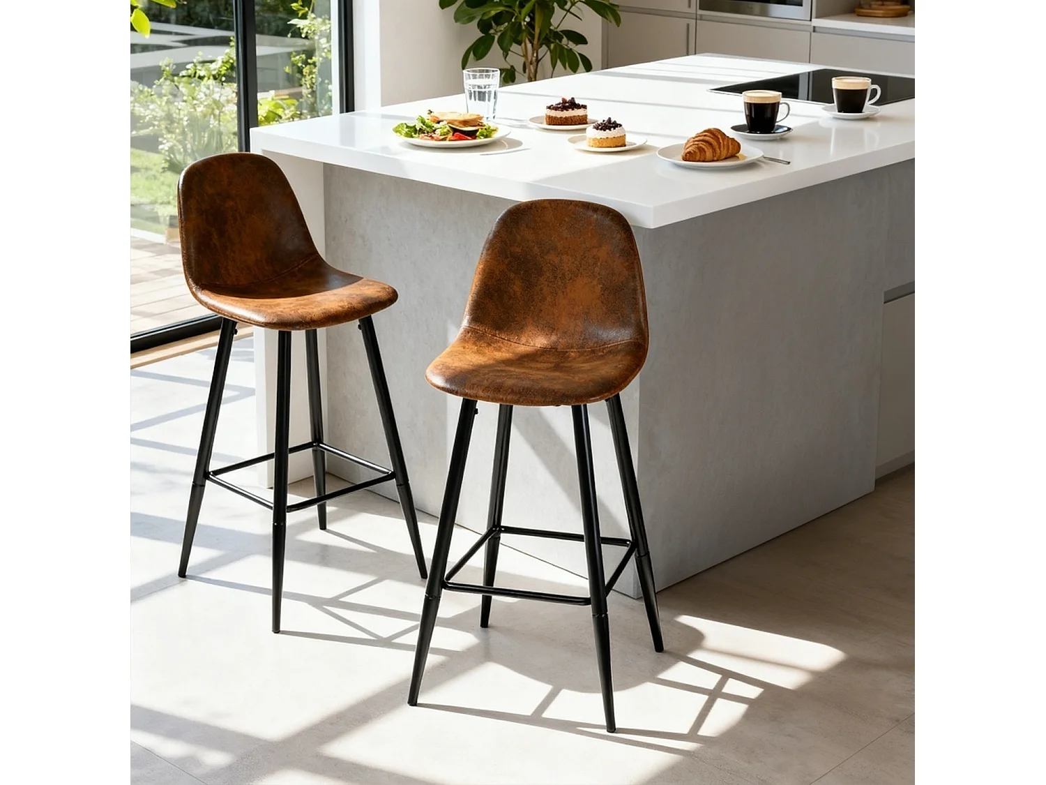 Lot de 2 Chaises de Bar Hautes - Siège en Tissu en Daim Marron, Pieds en Métal Noir - Style Vintage