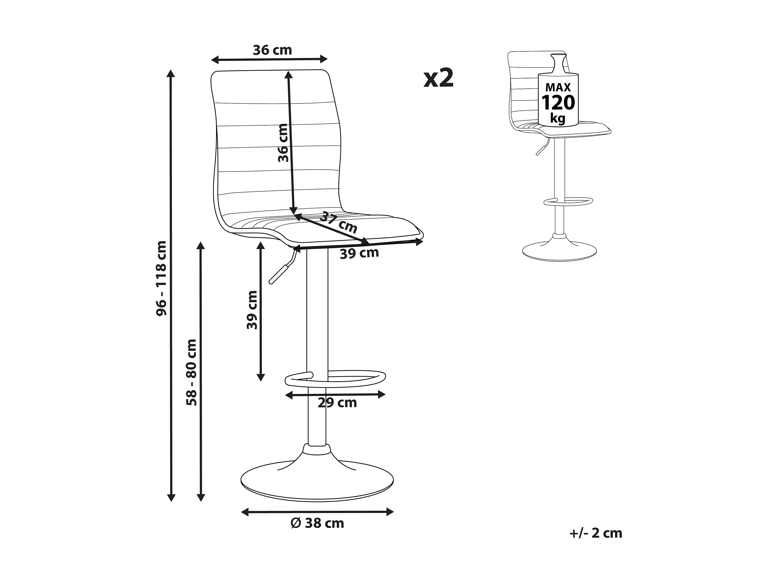 Lot de 2 chaises de bar PETERSBURG Cuir PU Noir