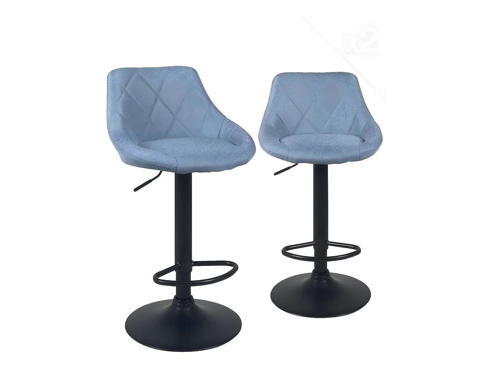 Lot 2 chaises de bar, tissu rembourré matelassé , pivotant, hauteur réglable pied noir LUTI (bleu)