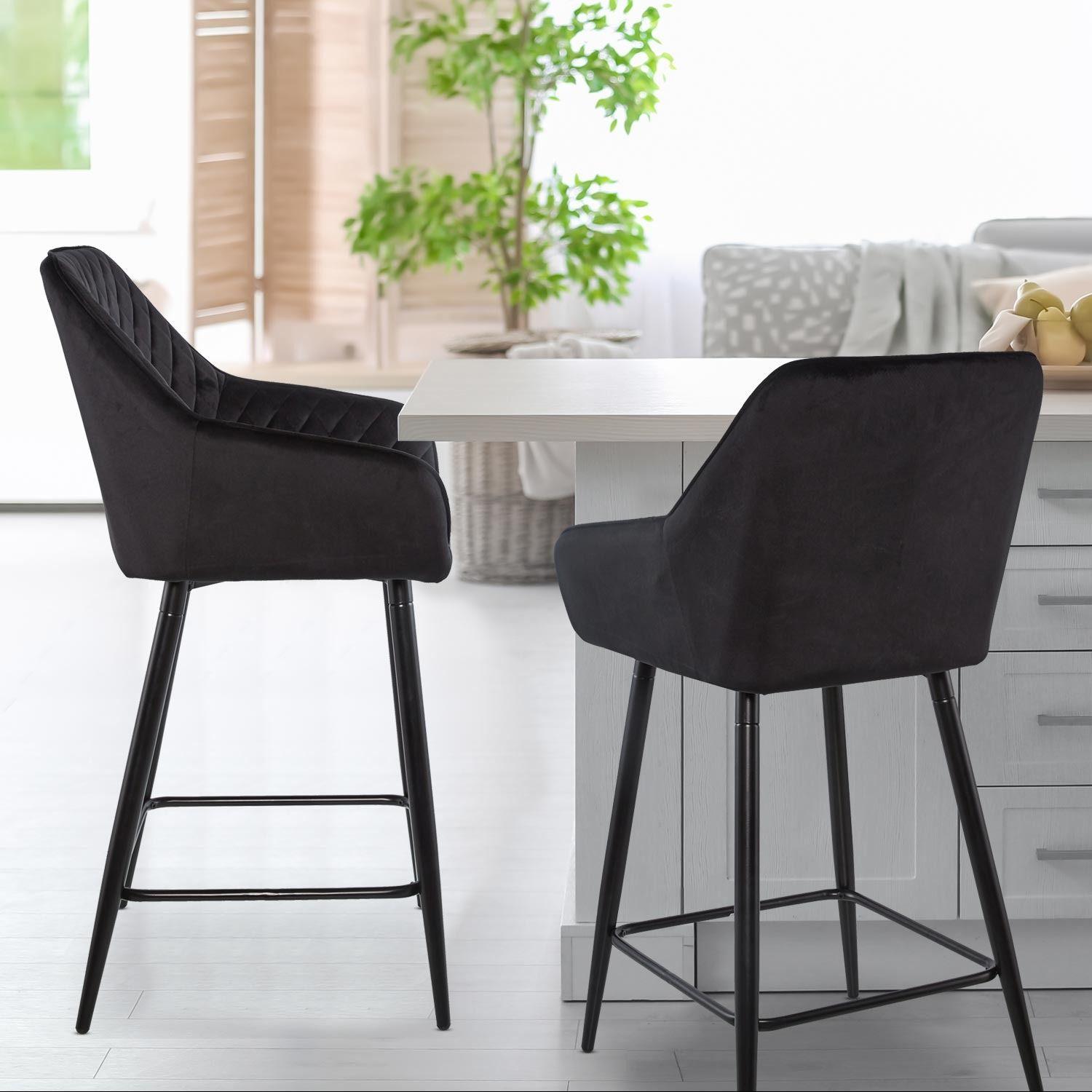 Lot de 2 chaises pour îlot central 65 cm en velours noir - Misty
