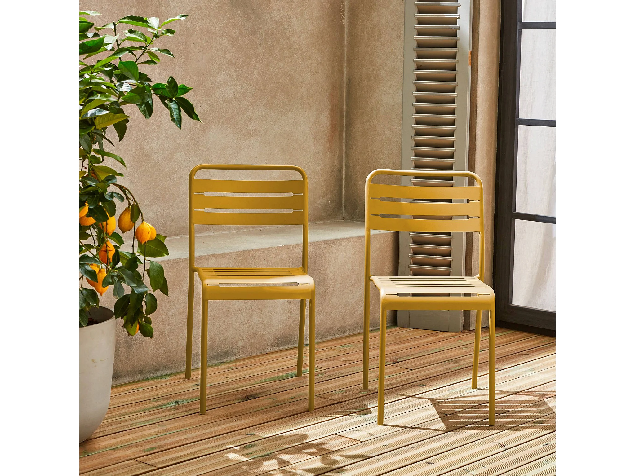 Lot de 2 chaises de jardin acier. 2 places. ocre. Amelia. L44 x P52 x H79cm