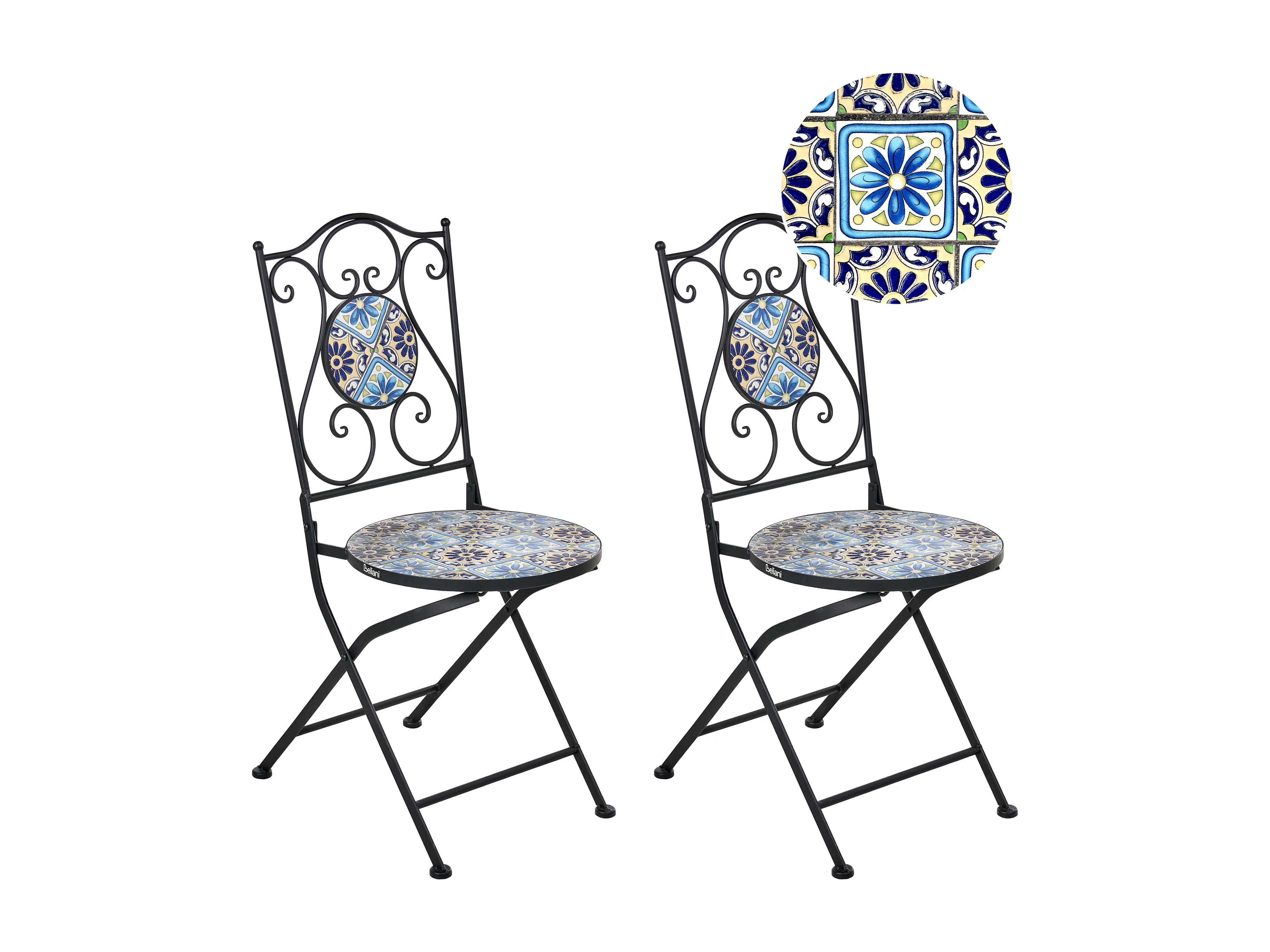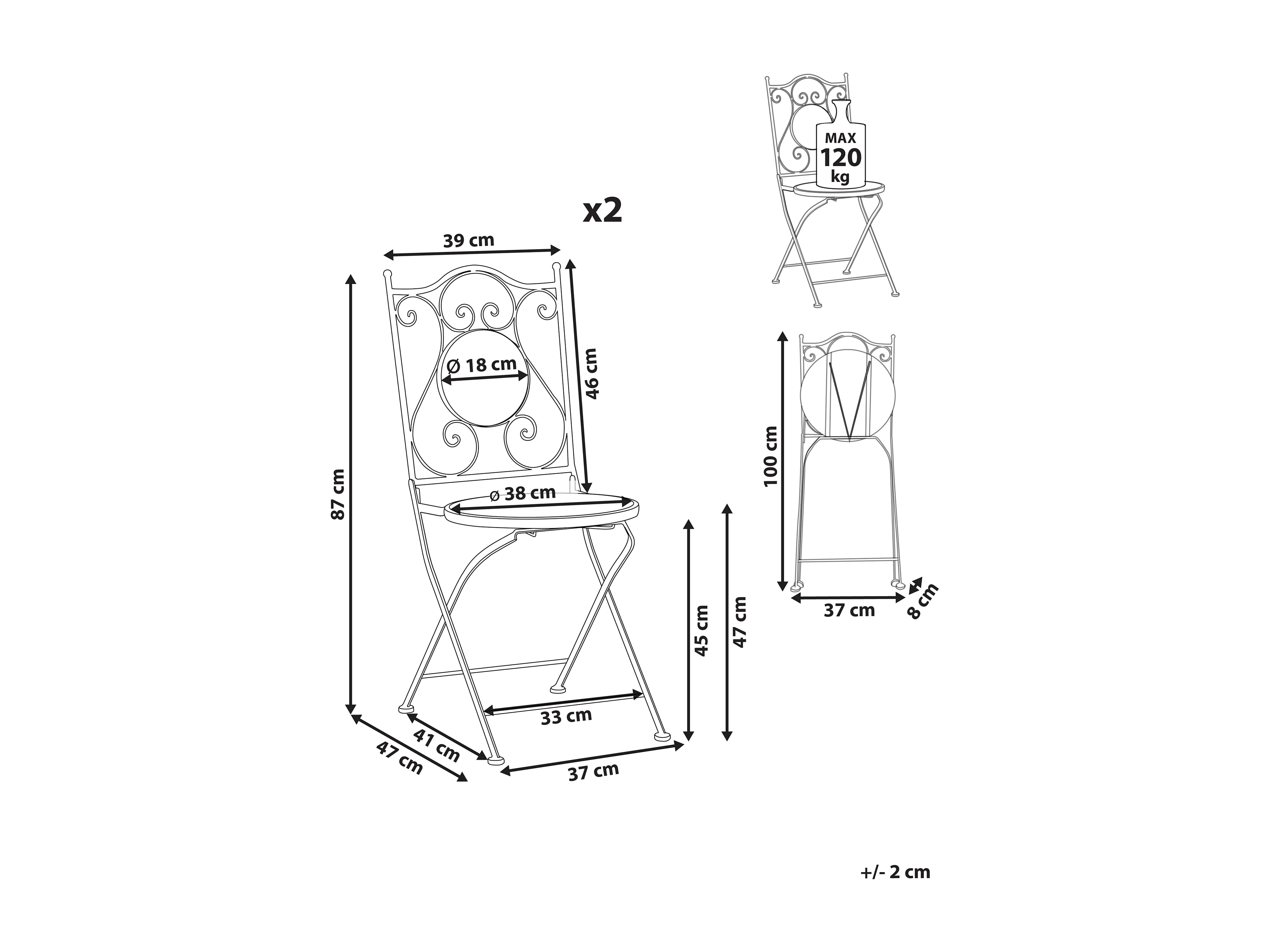 Lot de 2 chaises de jardin COMISO Pliant Métal Noir/blanc