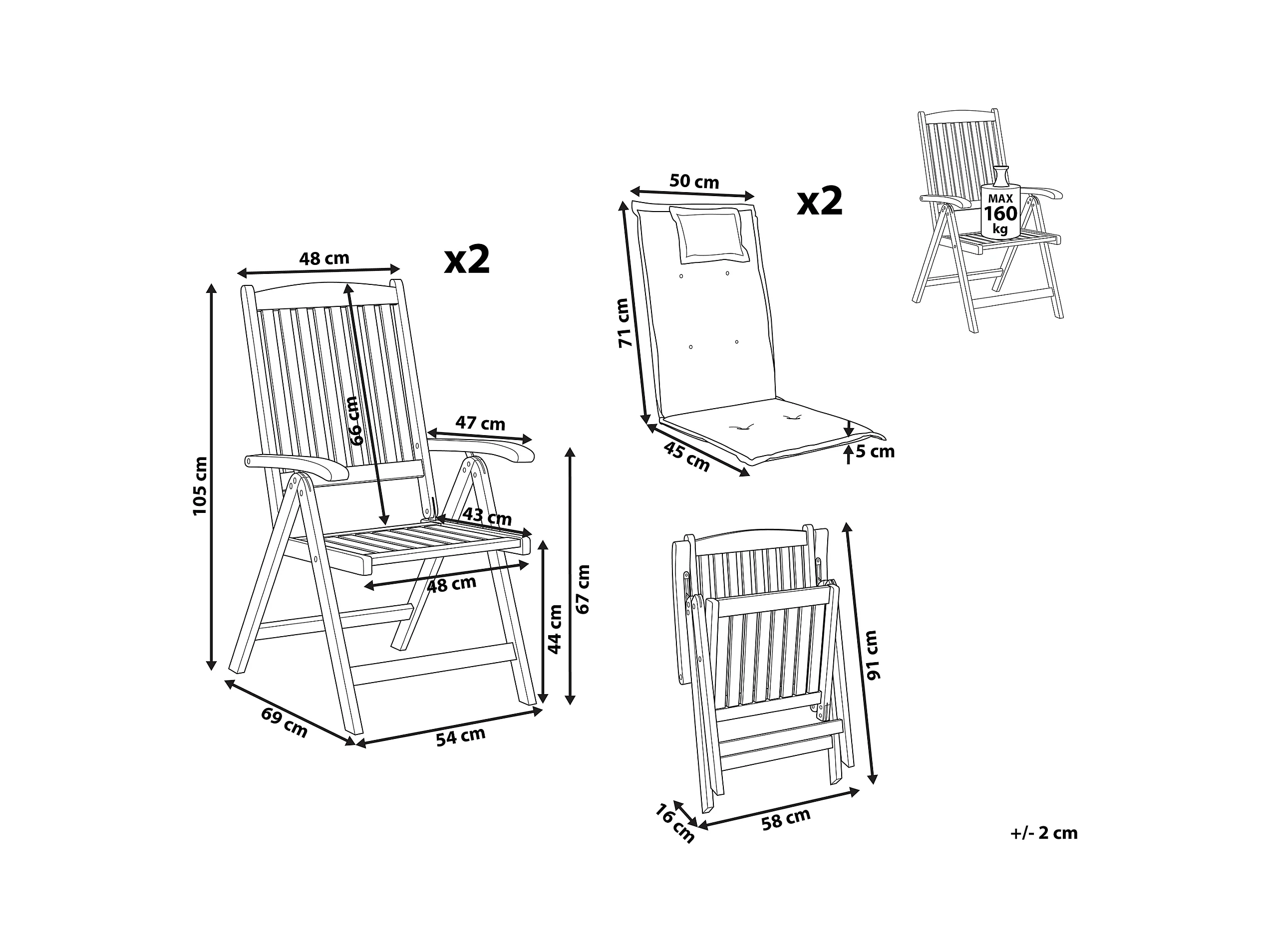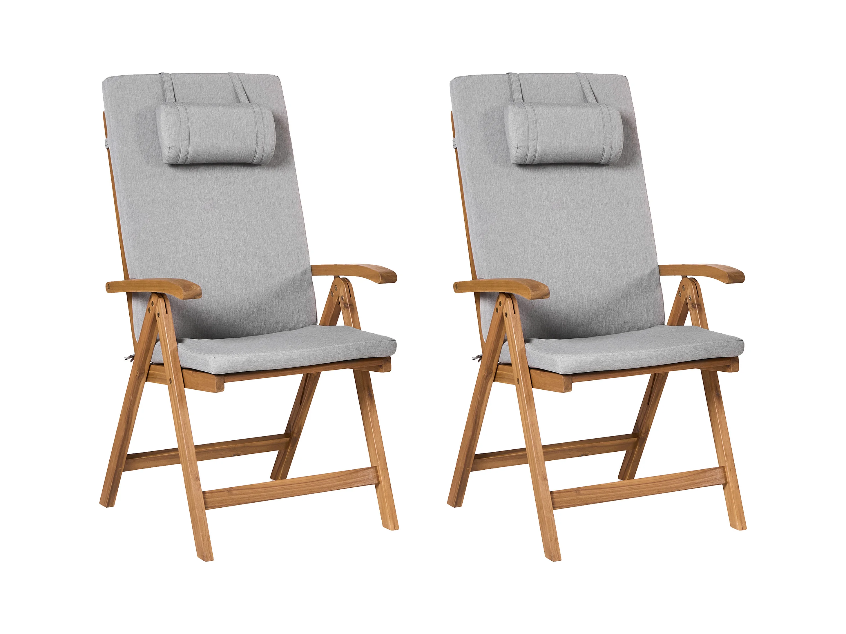 Lot de 2 chaises de jardin avec coussins JAVA PREMIUM Acacia Mélange de gris