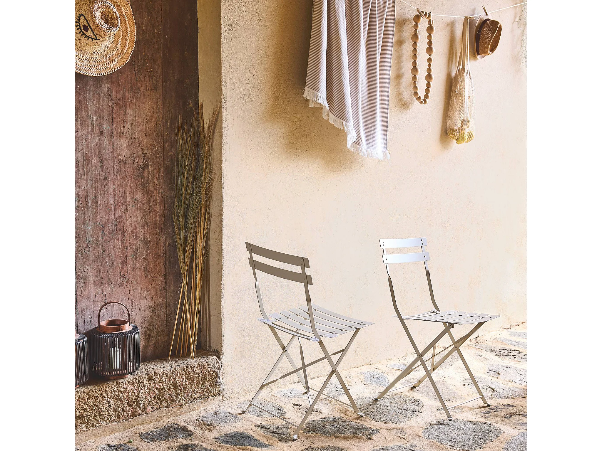 Lot de 2 chaises de jardin bistrot pliables en acier thermolaqué. 49.5 x 41 x 80.5cm