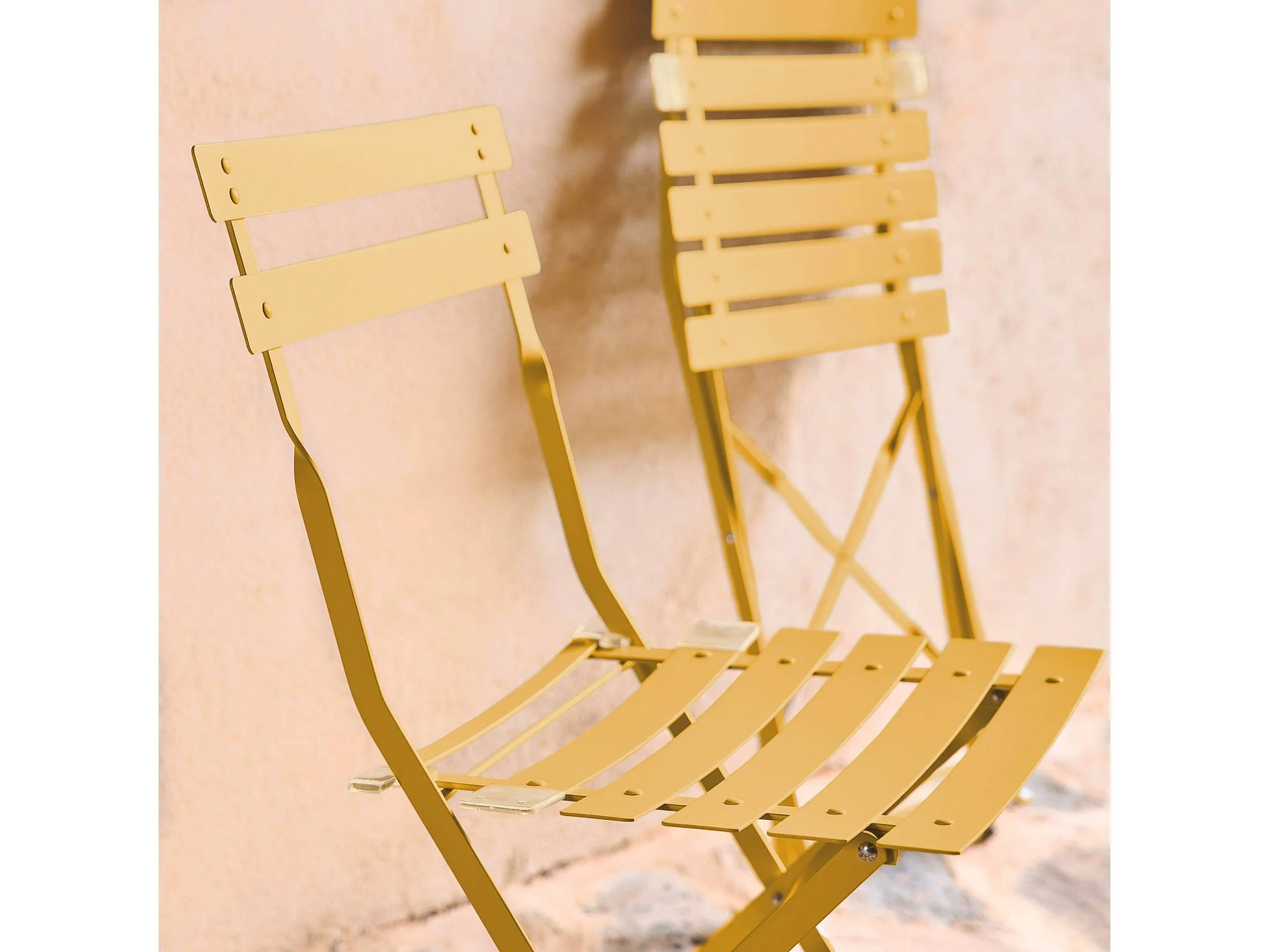 Lot de 2 chaises de jardin bistrot pliables en acier thermolaqué. 49.5 x 41 x 80.5cm