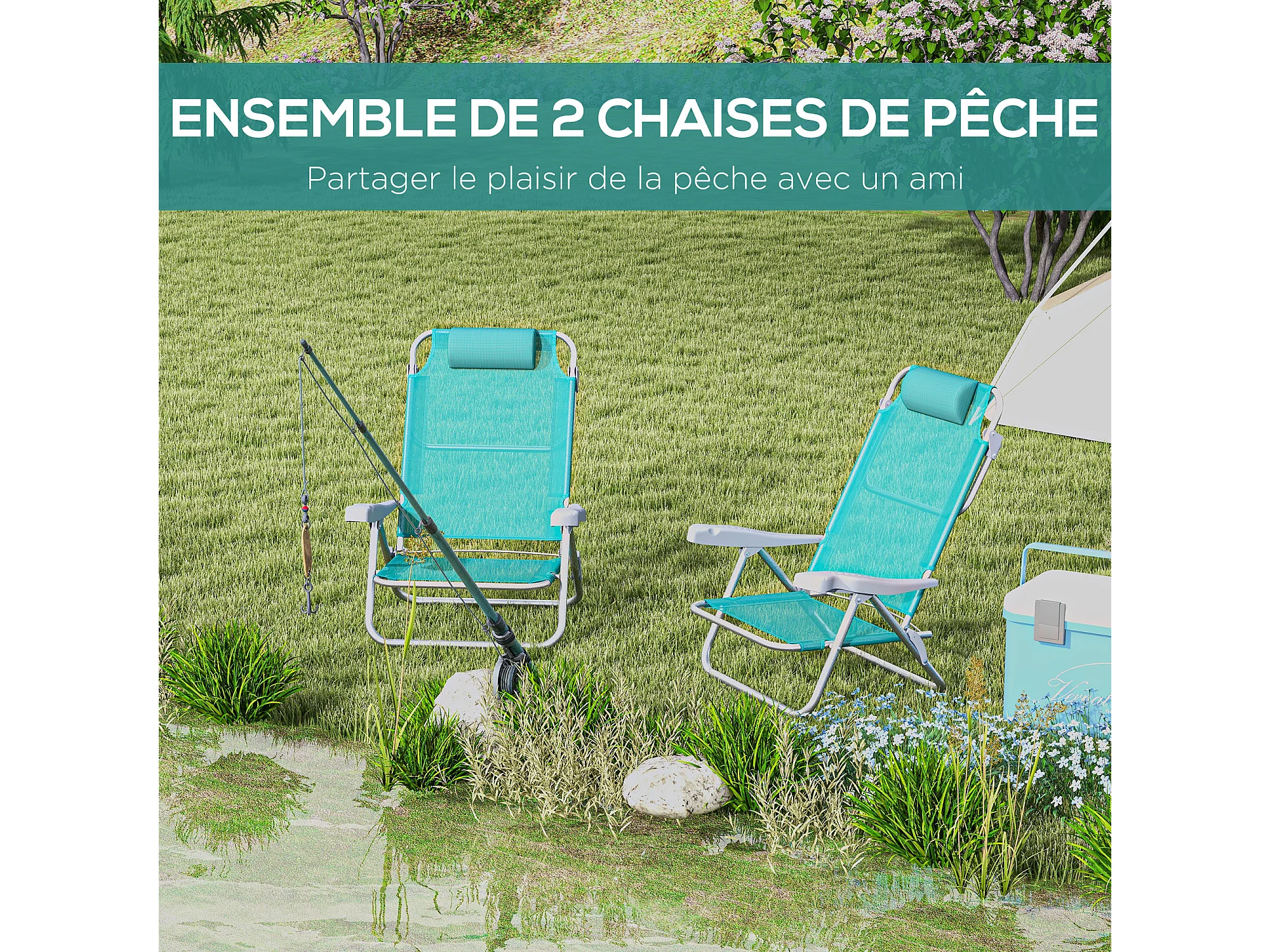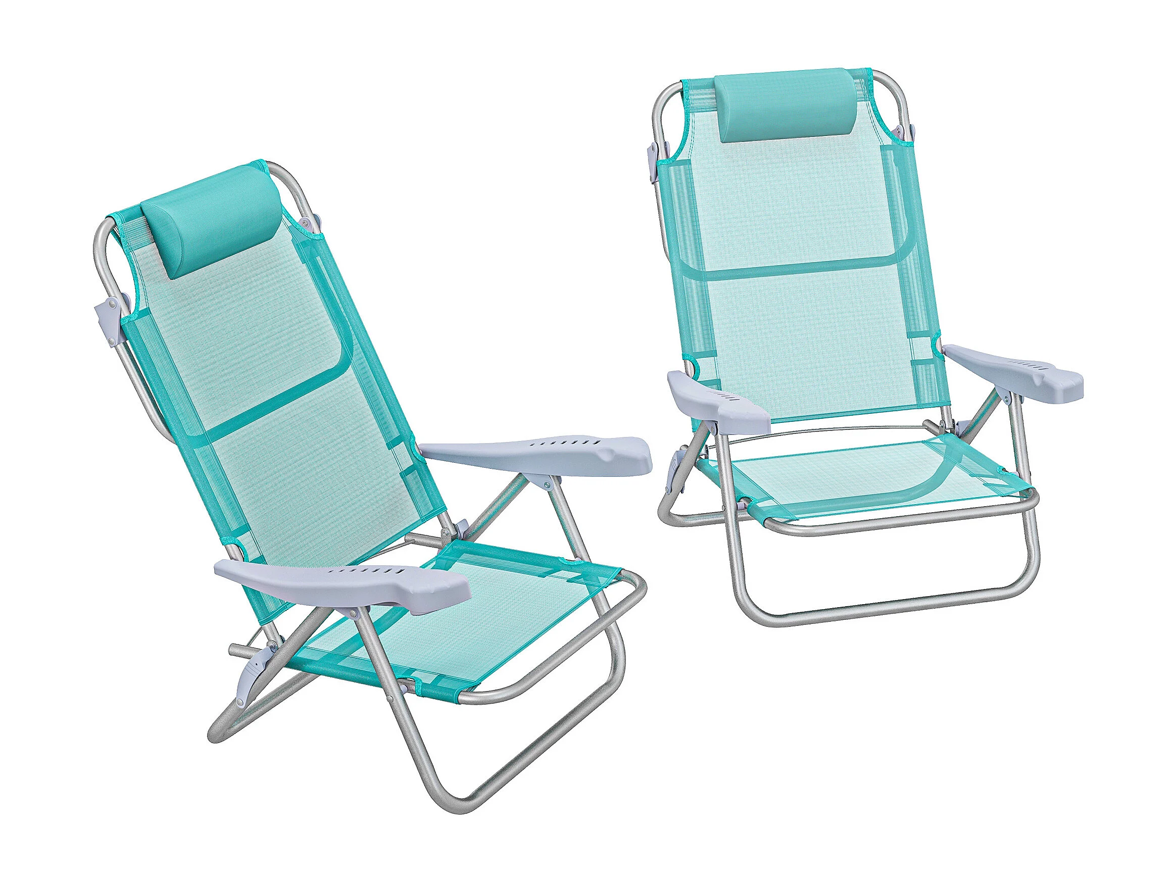 Lot de 2 chaises de jardin camping plage pliables tétière dossier inclinable 6 niv. alu. teslin gris