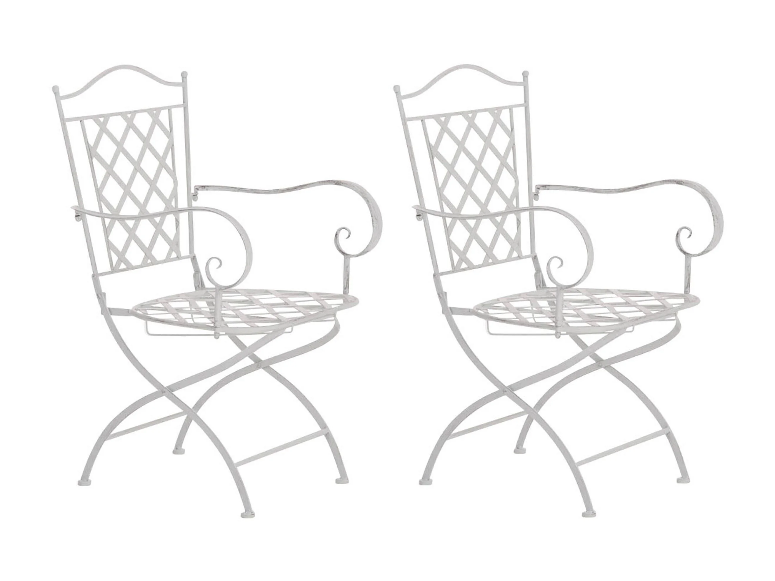 Lot de 2 Chaises de jardin - Métal & Fer galvanisé - Blanc antique - Adara