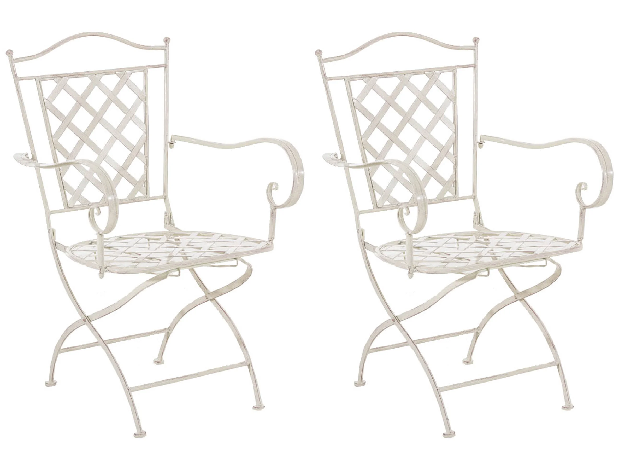 Lot de 2 Chaises de jardin - Métal & Fer galvanisé - Crème antique - Adara