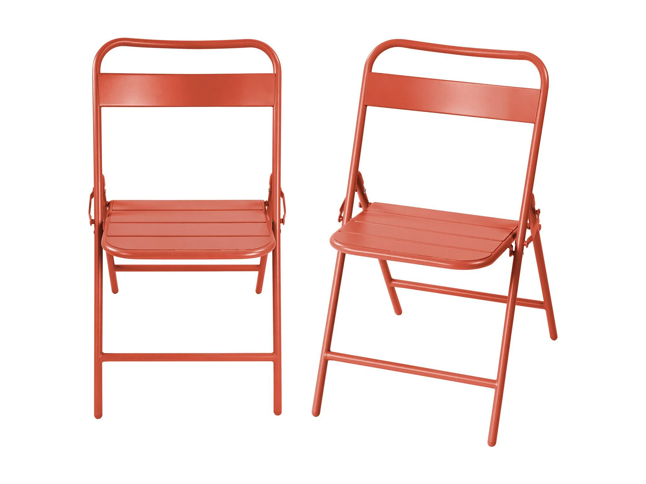 Lot de 2 chaises de jardin pliante acier terracotta. 44.3 x 49 x 79.7 cm - Amélia