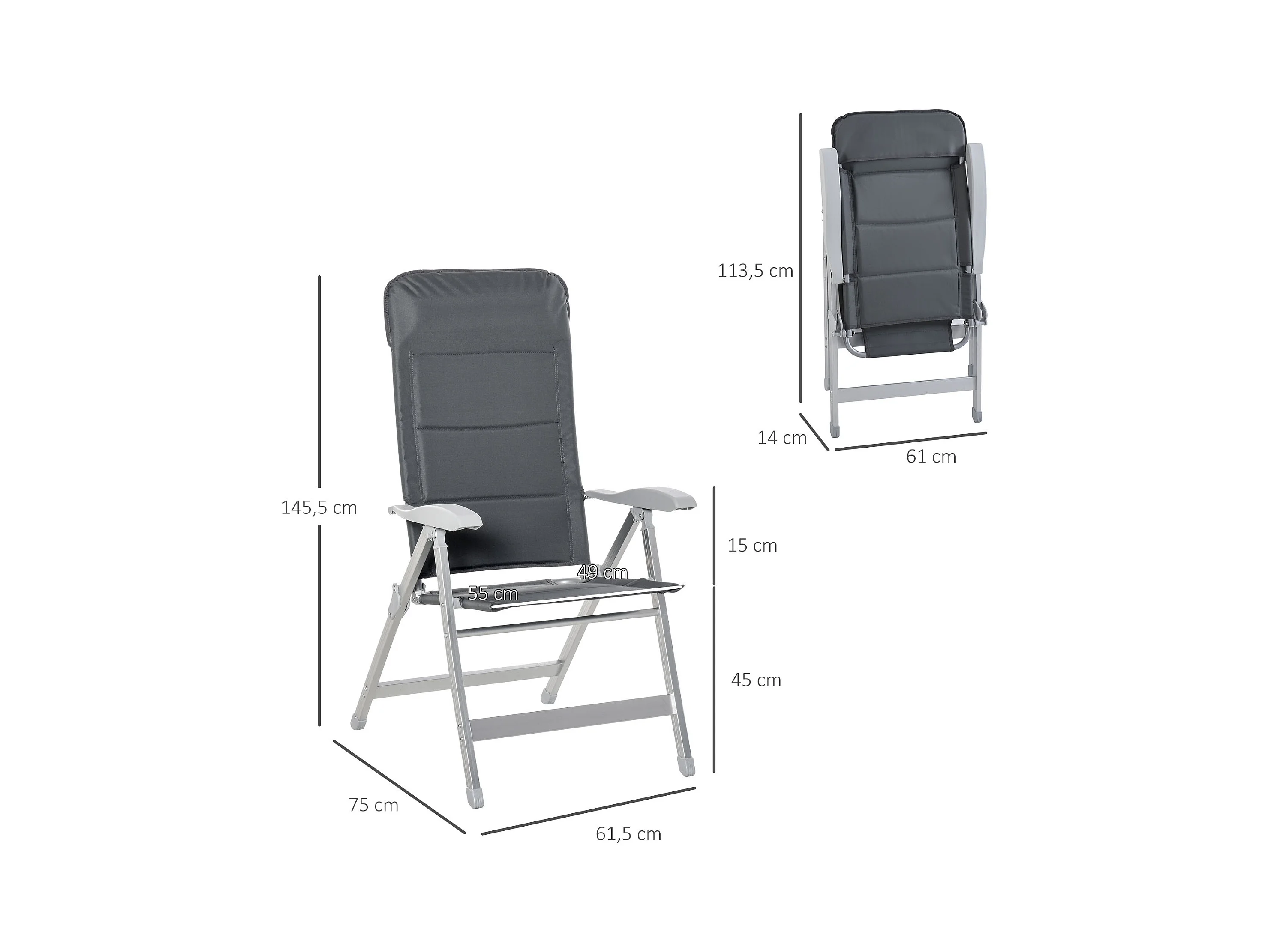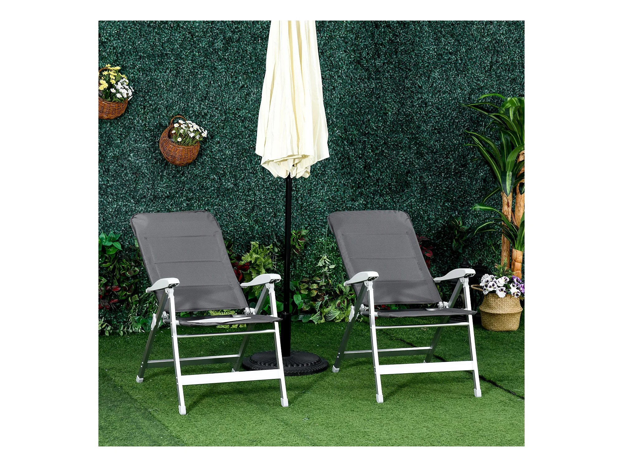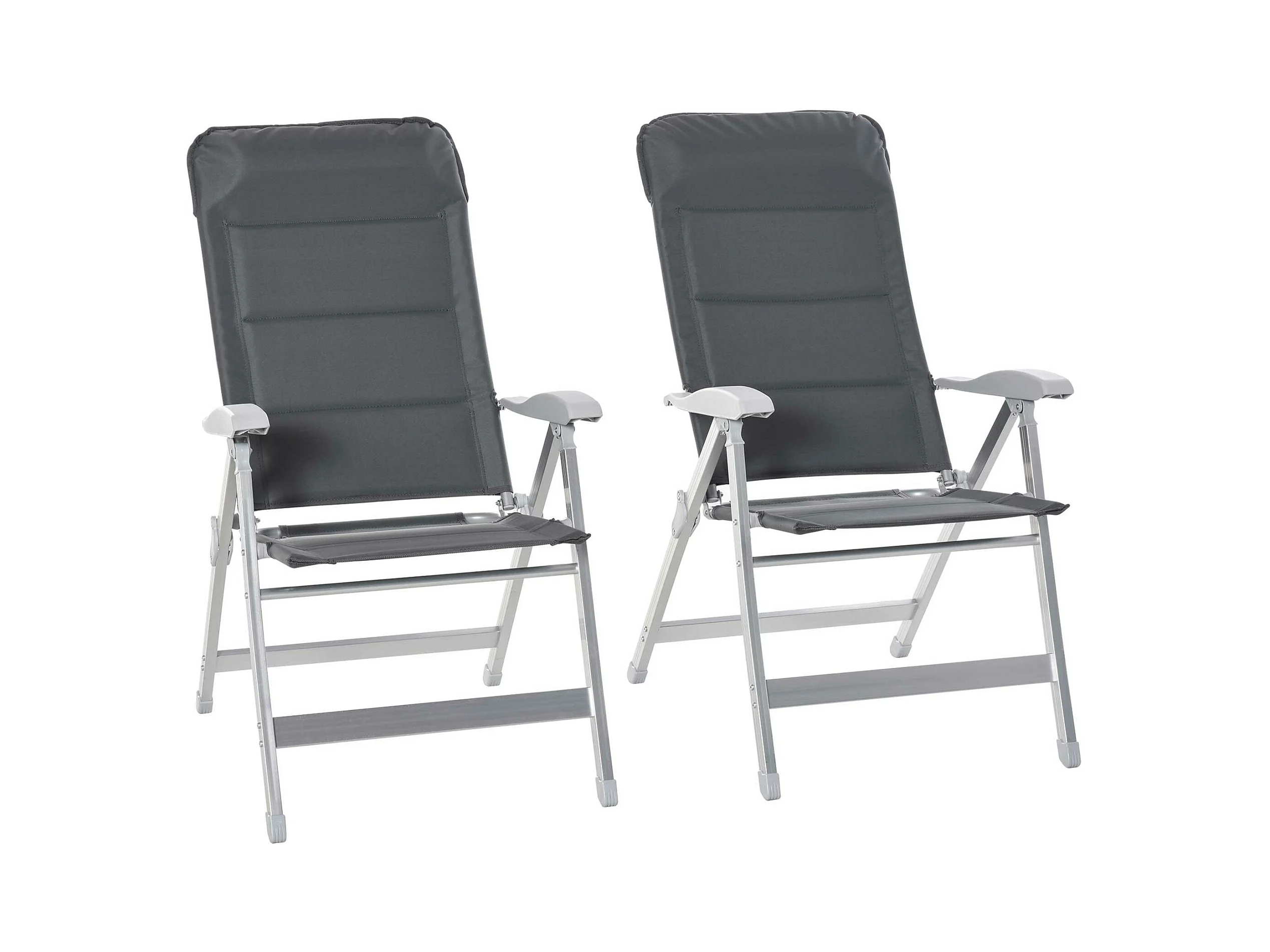 Lot de 2 chaises de jardin pliantes dossier haut inclinable multipositions accoudoirs tétière alu. oxford déperlant gris