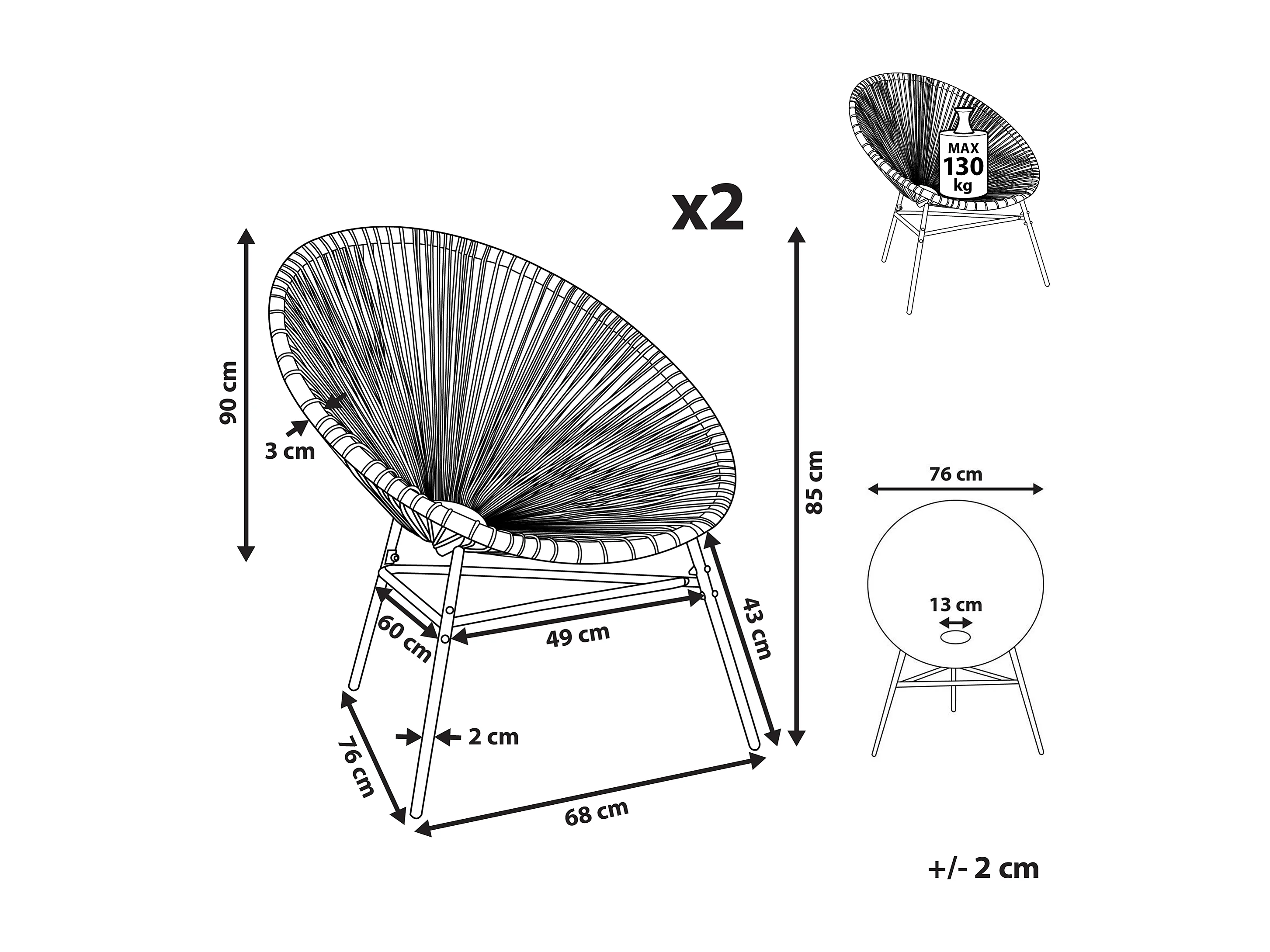Lot de 2 chaises de jardin ACAPULCO Jaune