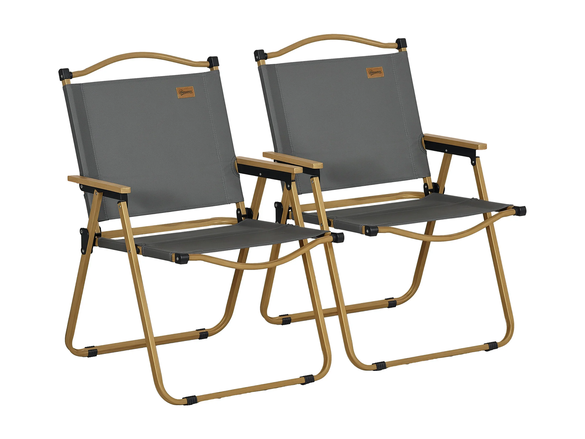 Lot de 2 chaises de plage camping pliantes - poignée - structure acier aspect bois oxford gris