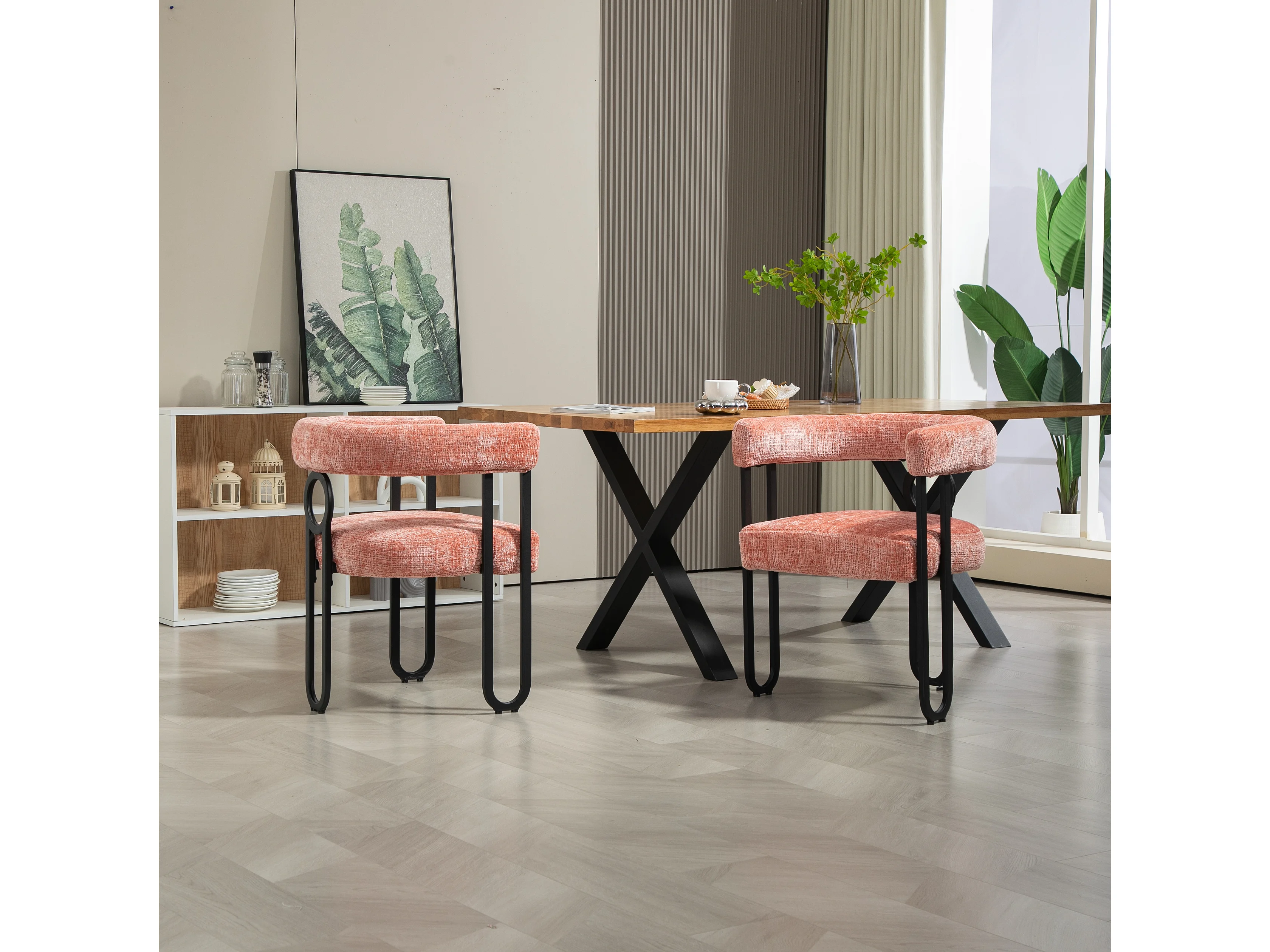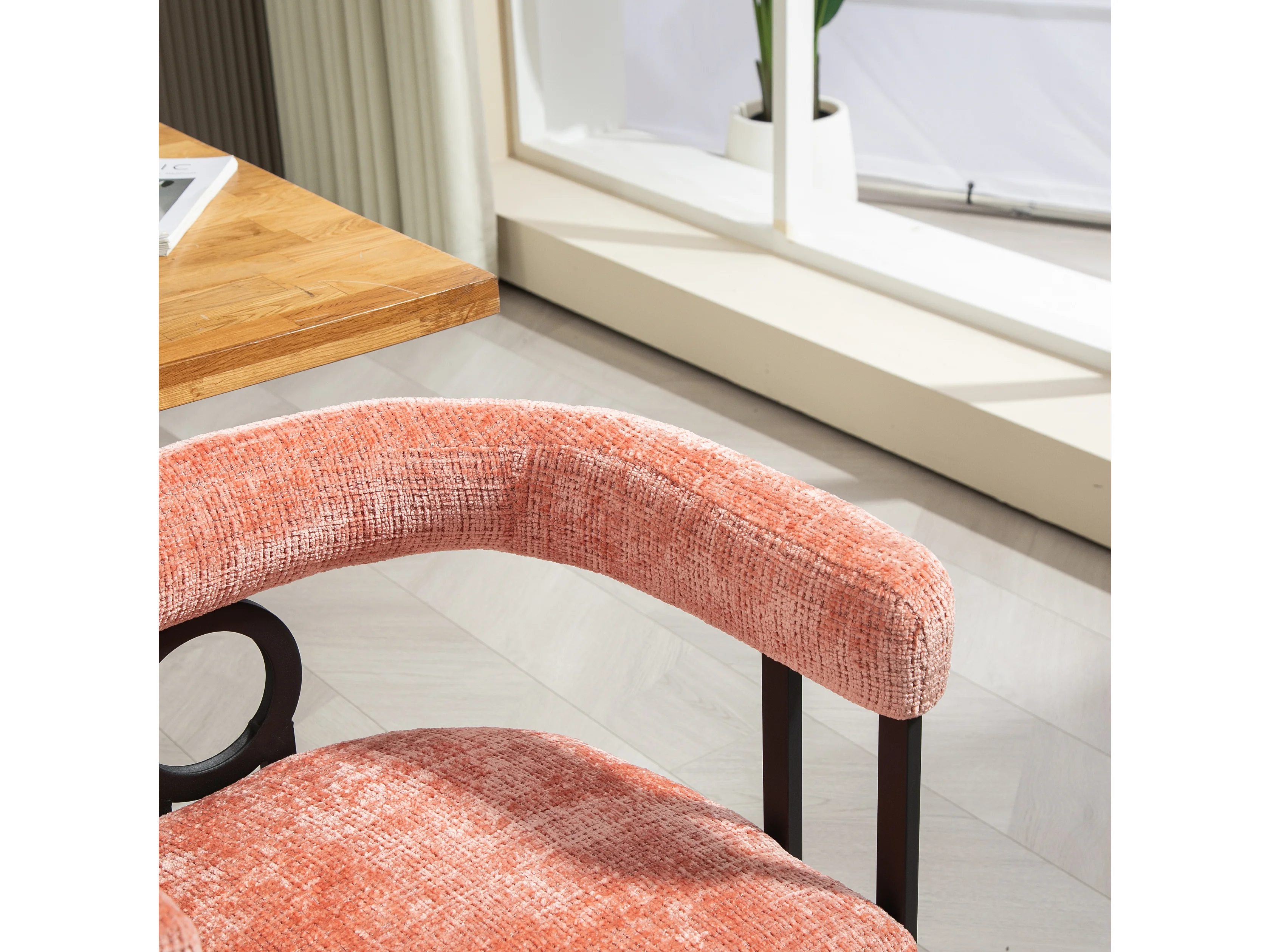 Lot de 2 chaises de salle à manger, avec dossier rond, pour salle à manger, en chenille Rose