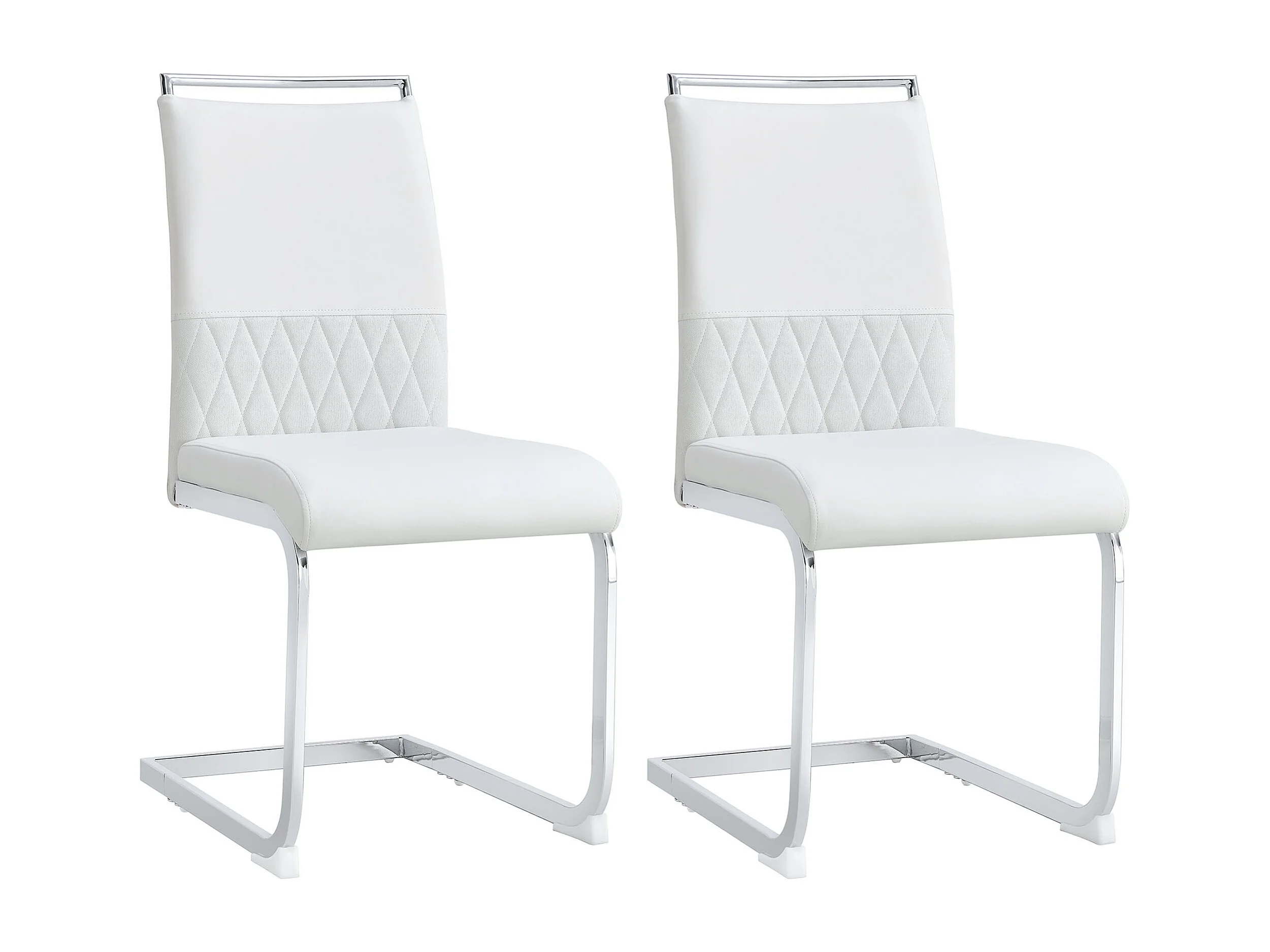 Lot de 2 chaises de salle à manger blanc - dossier rayé et 4 repose-pieds - PU et lin