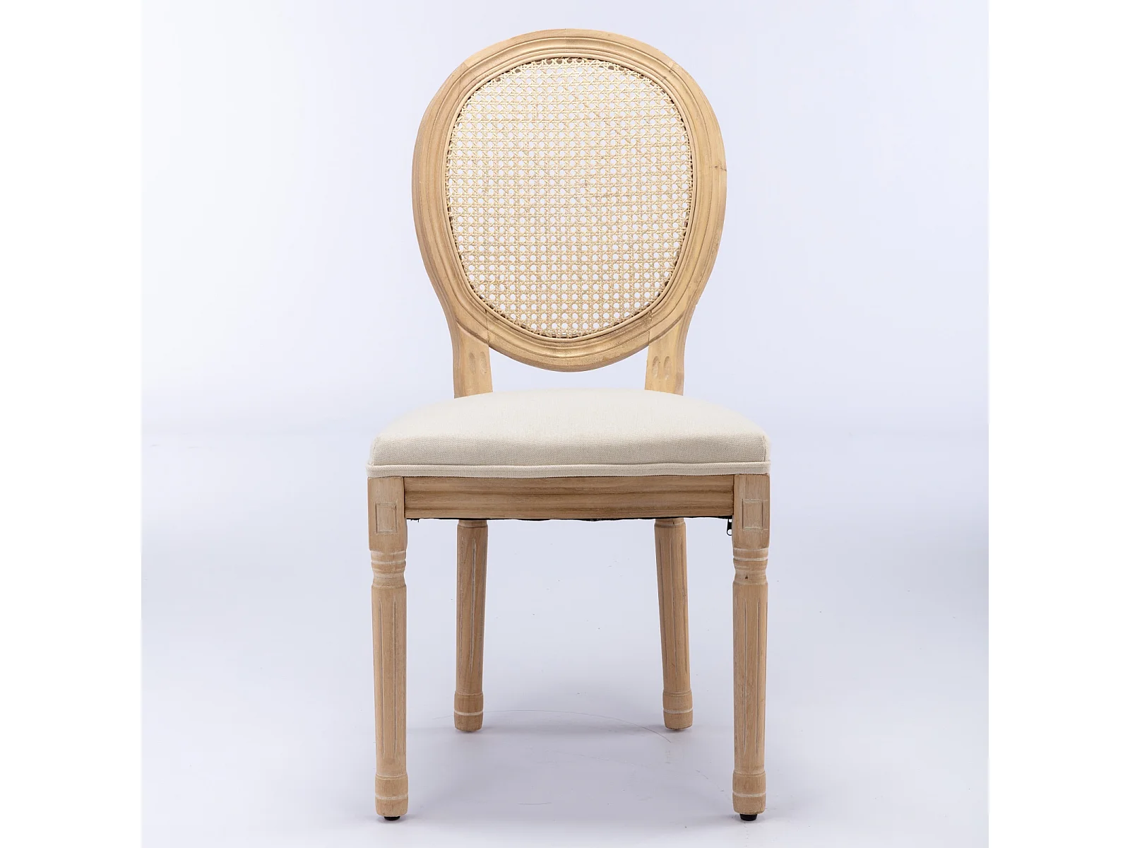 Lot de 2 chaises de salle à manger – Cadre en bois massif – Assises en lin – Beige