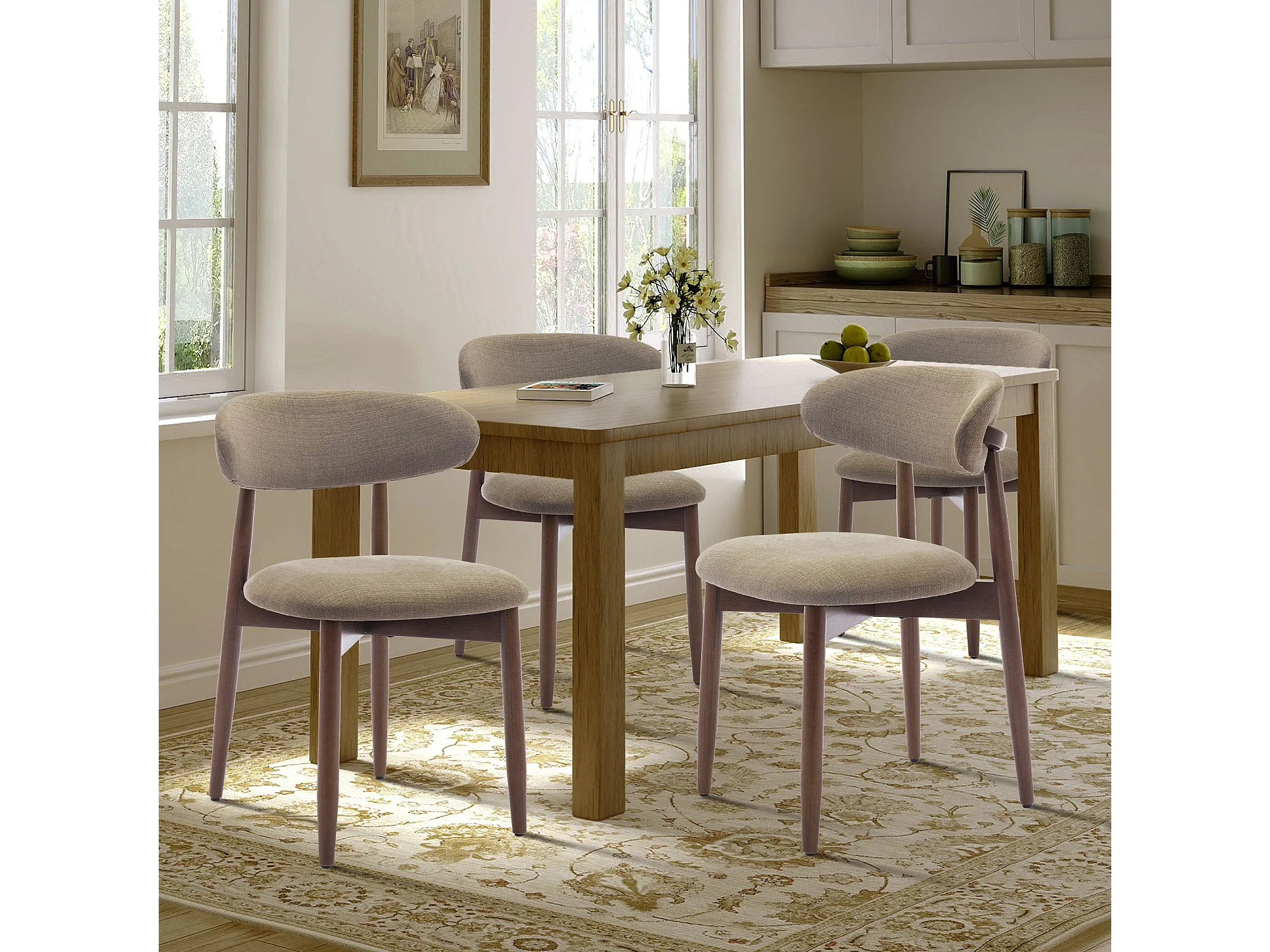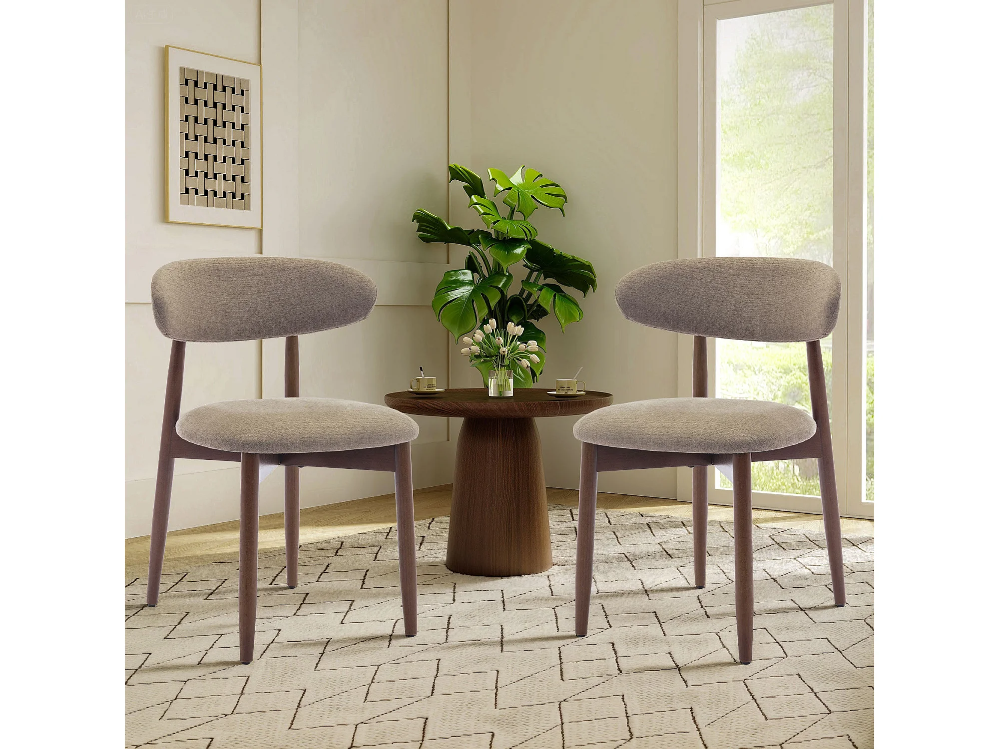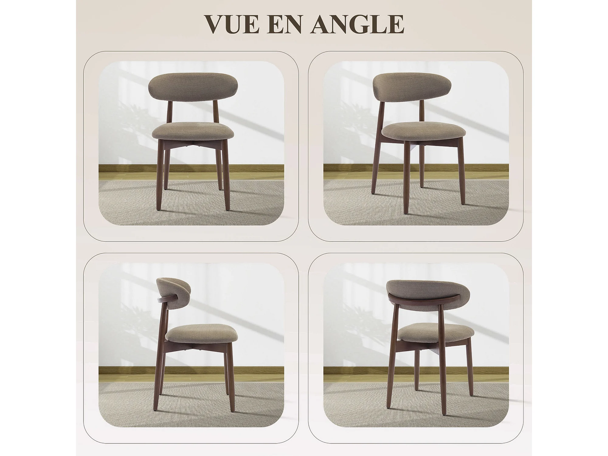 Lot de 2 chaises de salle à manger camel SMARTUE – Pieds en bois massif, dossier incurvé, assise en tissu