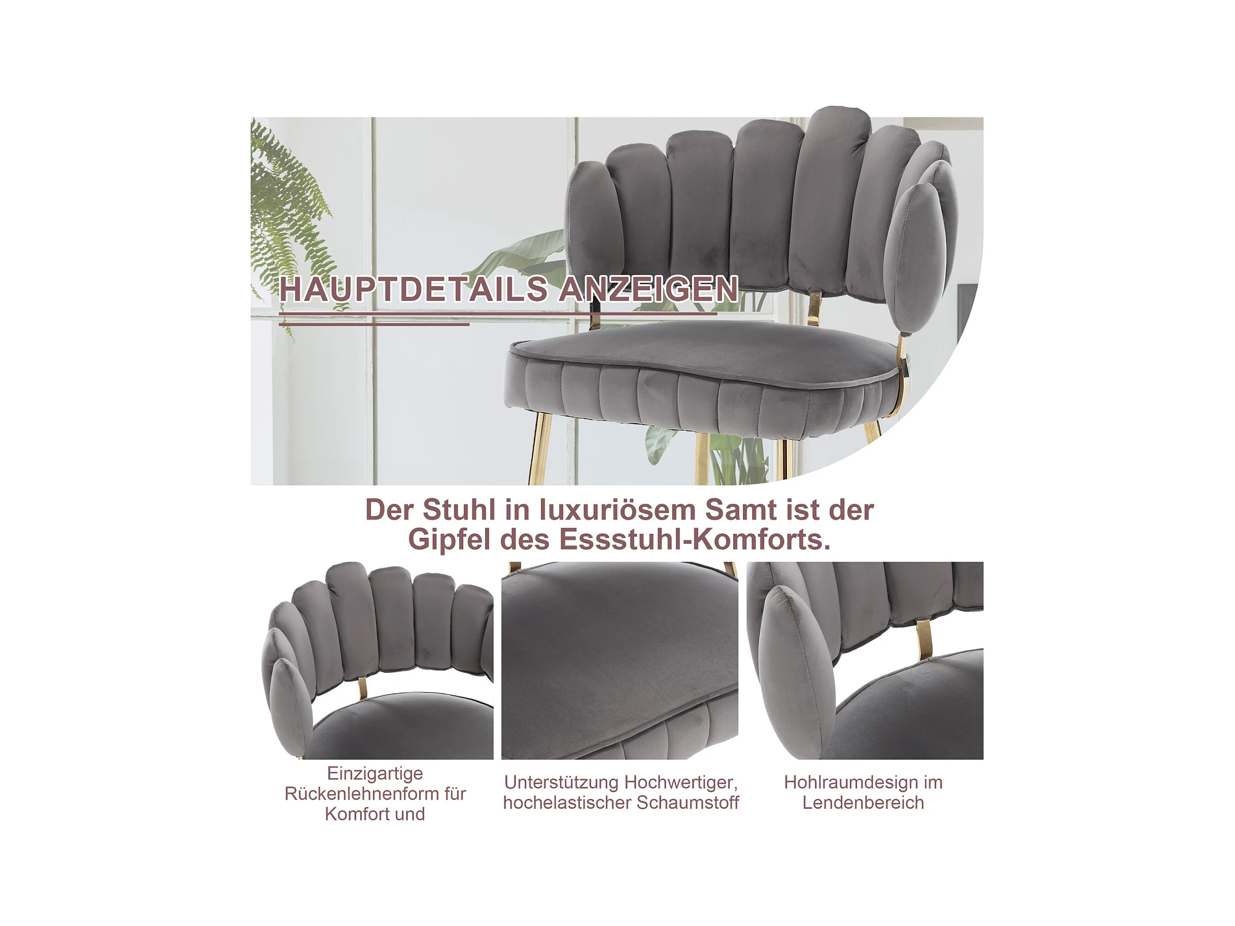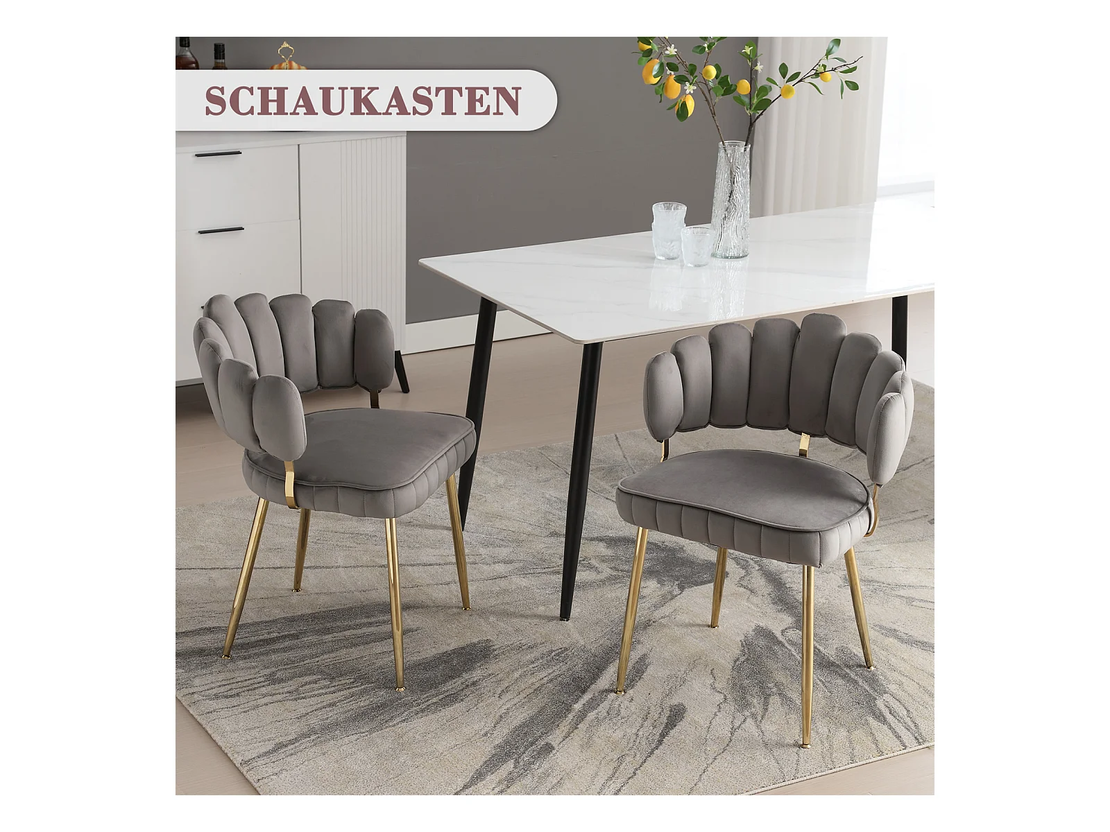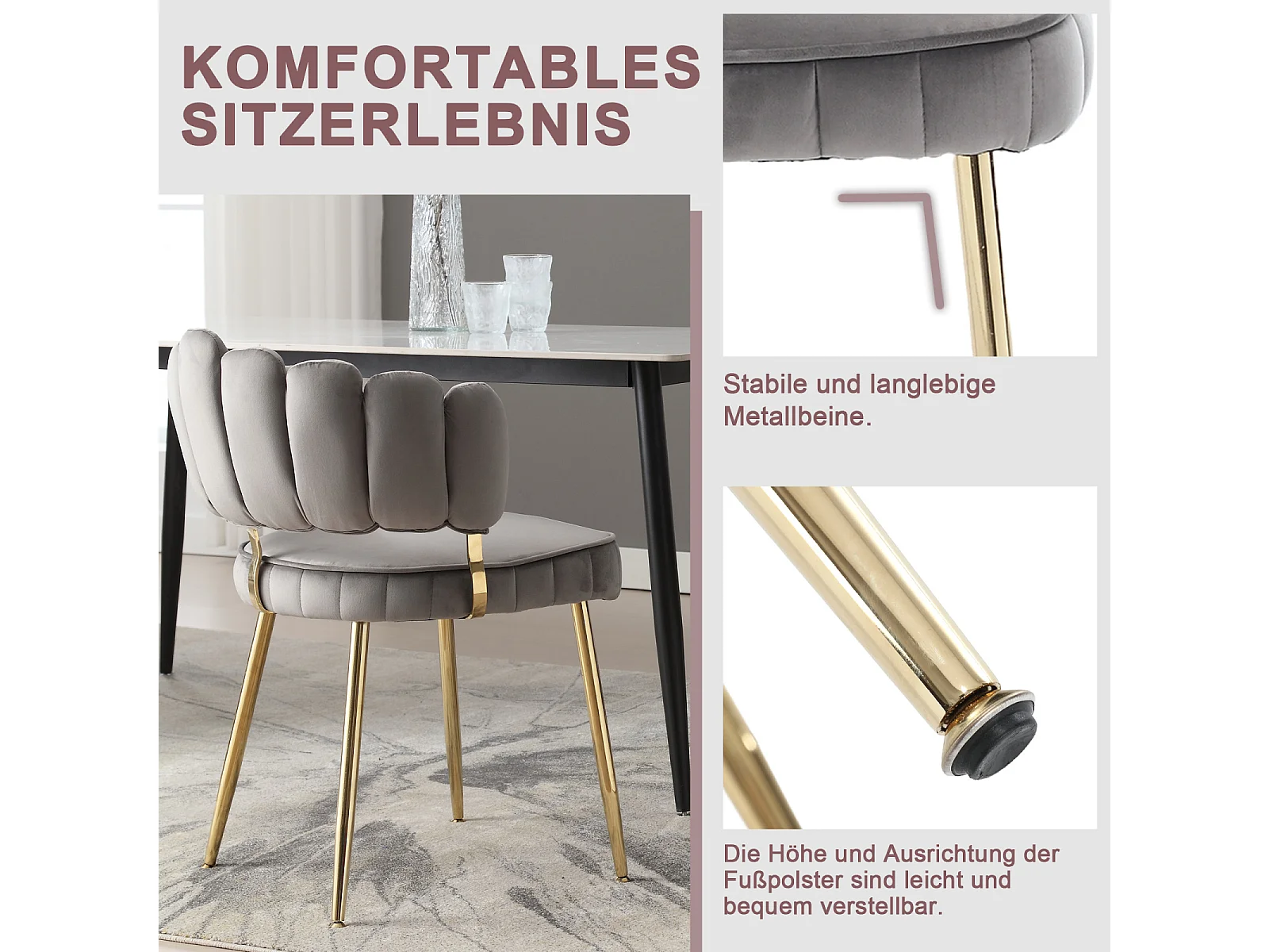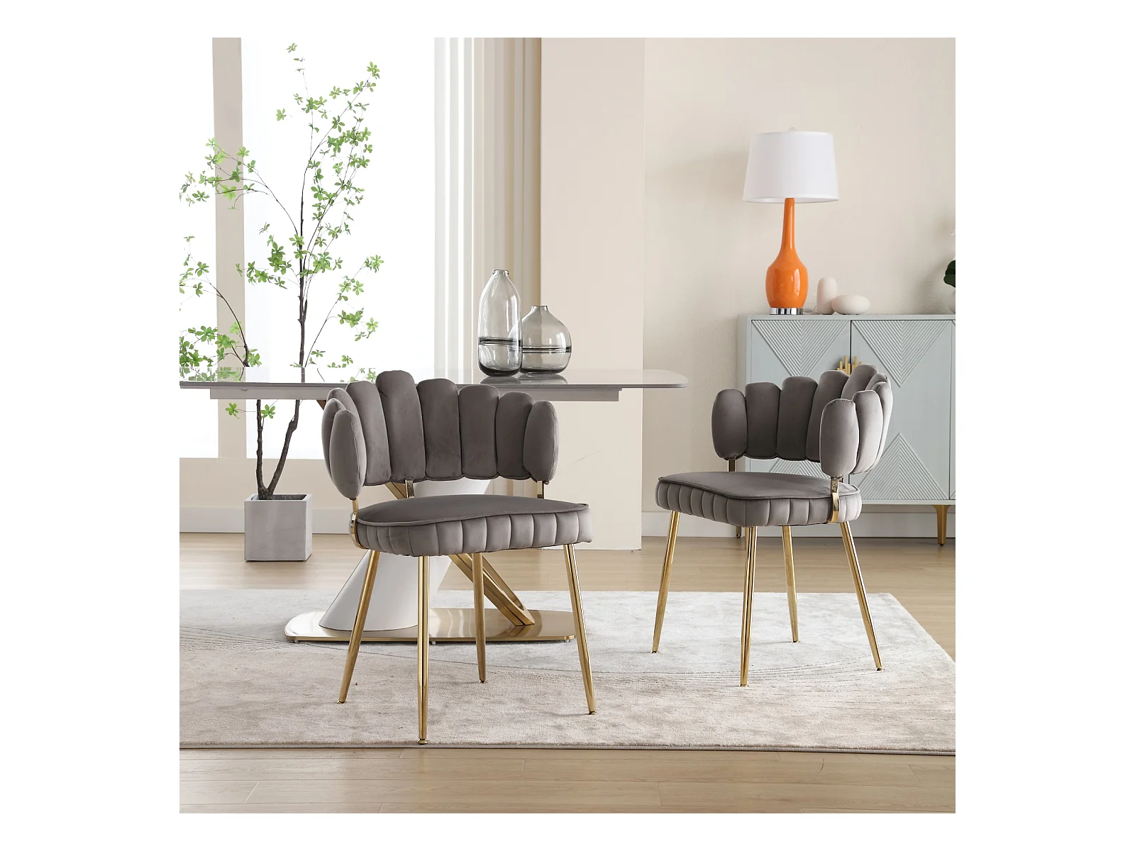 Lot de 2 chaises de salle à manger, chaise d'appoint velours , chaise simple de loisir avec pieds dorés, 58x56x78cm, Gris