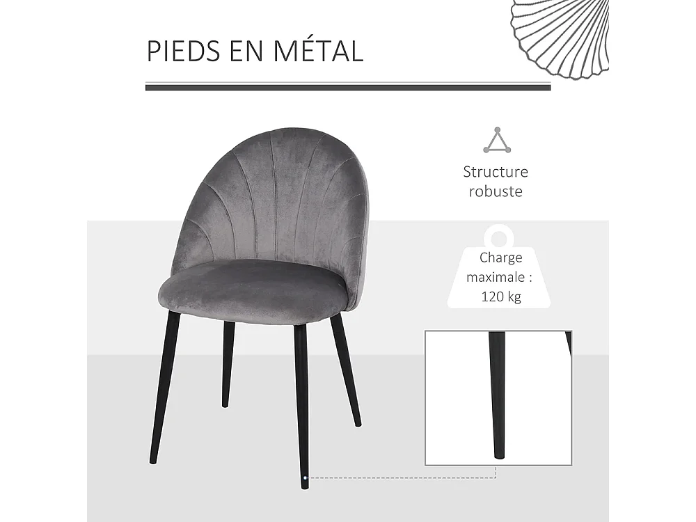 Lot de 2 chaises de Salle à Manger Chaise de Cuisine Velours Pieds métal Gris dim. 52L x 54l x 79H cm