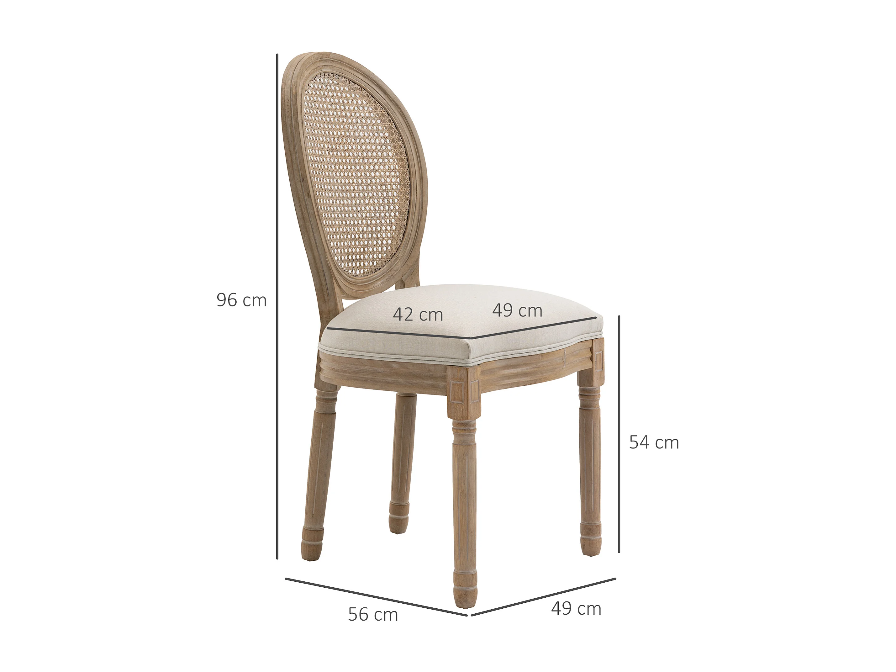 Lot de 2 chaises de salle à manger - chaise de salon médaillon style Louis XVI - bois massif sculpté, patiné - dossier cannage - aspect lin beige