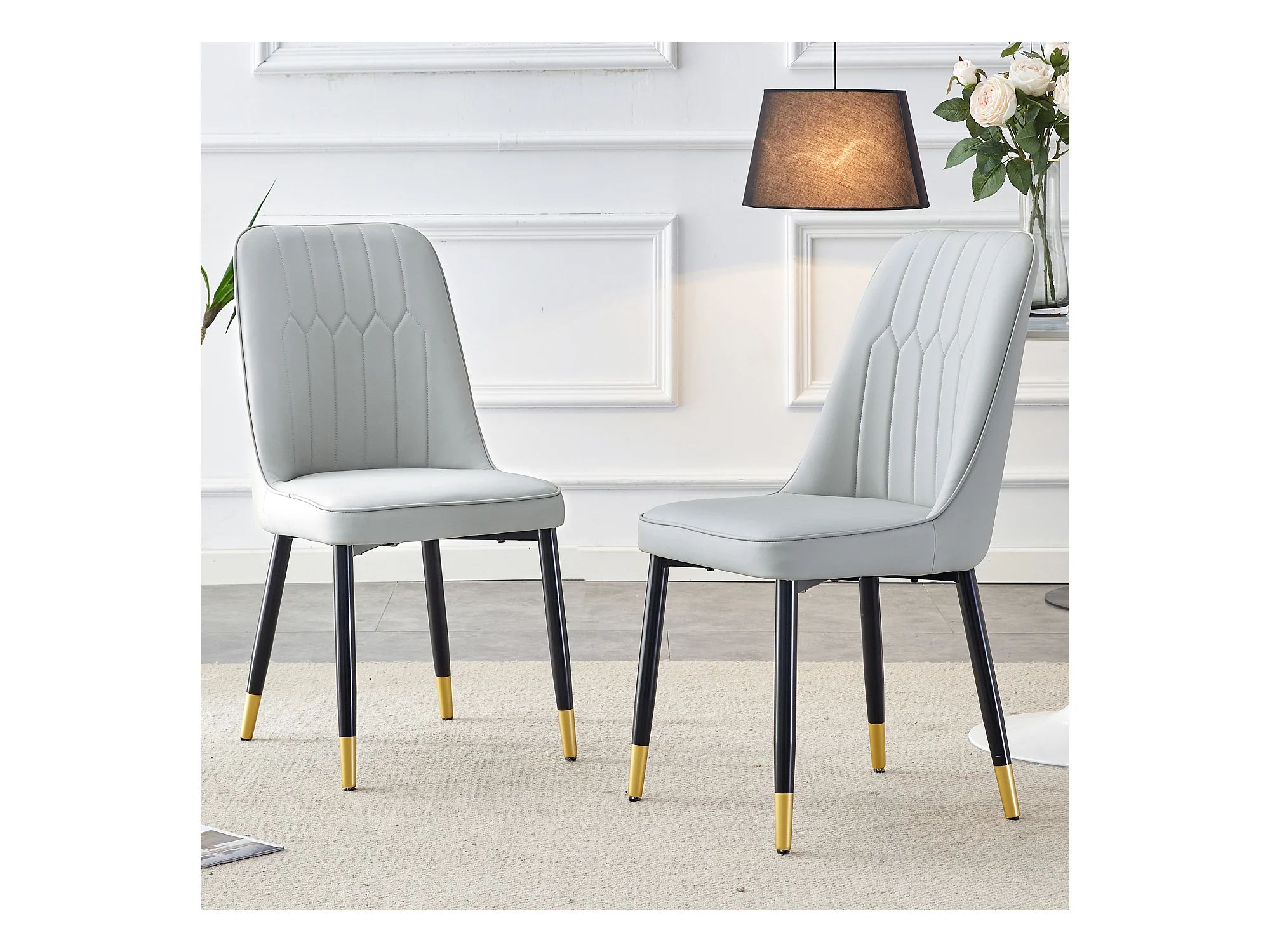Lot de 2 chaises de salle à manger - Chaises avec dossiers et pieds en métal noir - PU gris - pour salles à manger et cuisines