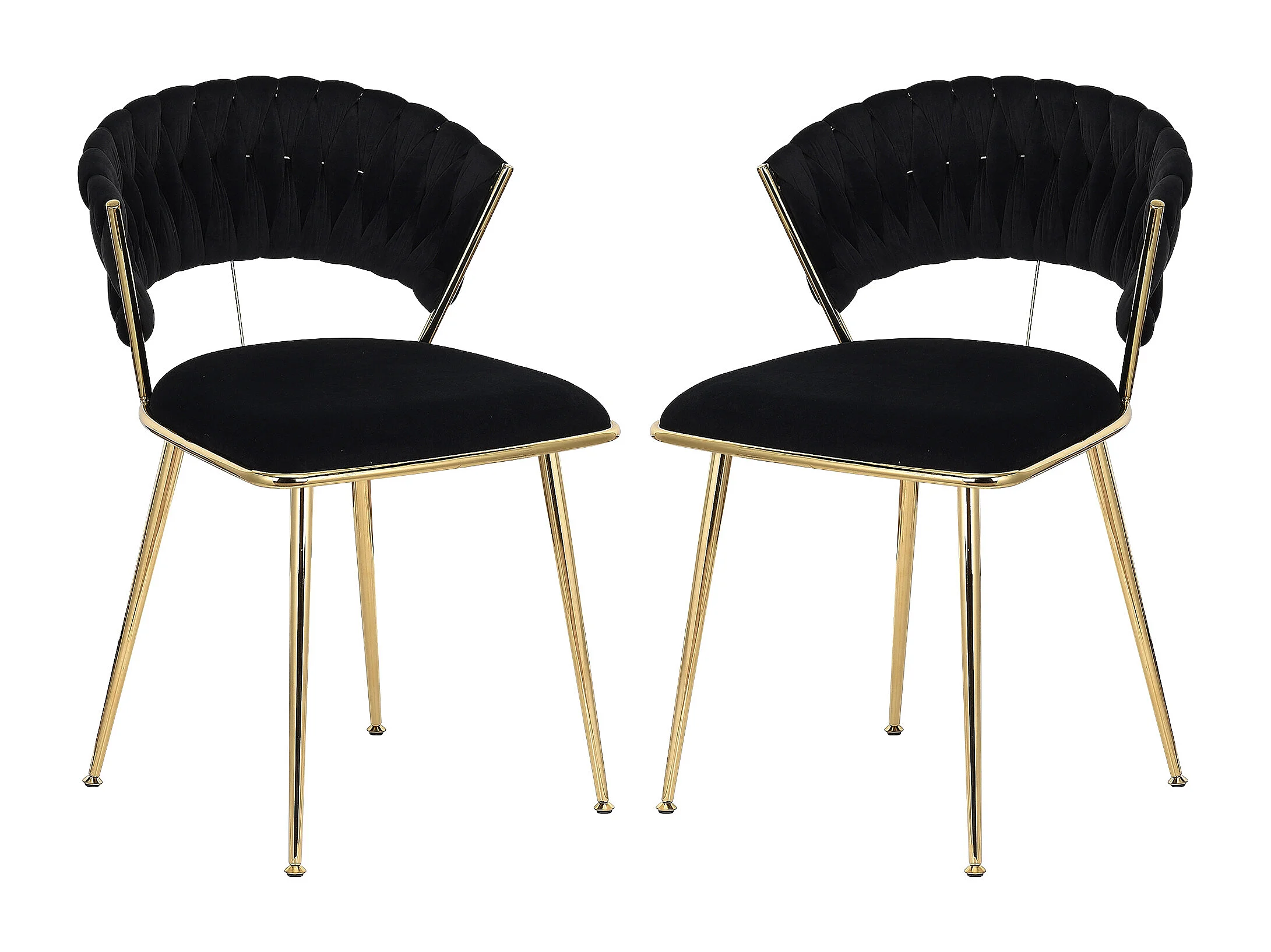Lot de 2 Chaises de Salle à Manger - chaises de salon à dossier arrondi et structure métallique - velours - noir