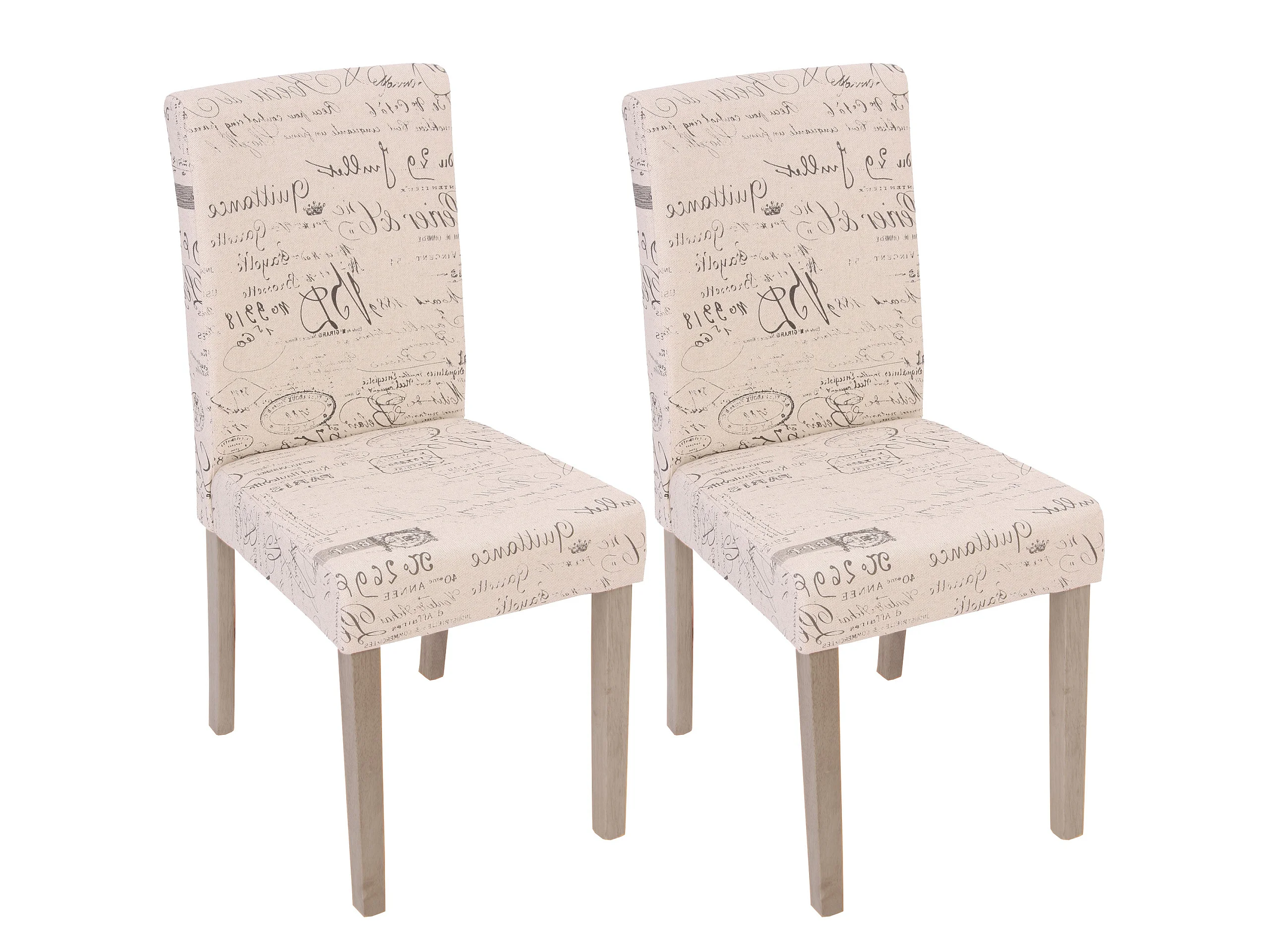 Lot de 2 chaises de salle à manger cuisine en tissu crème motif écriture des pieds en bois clair 04_0000429