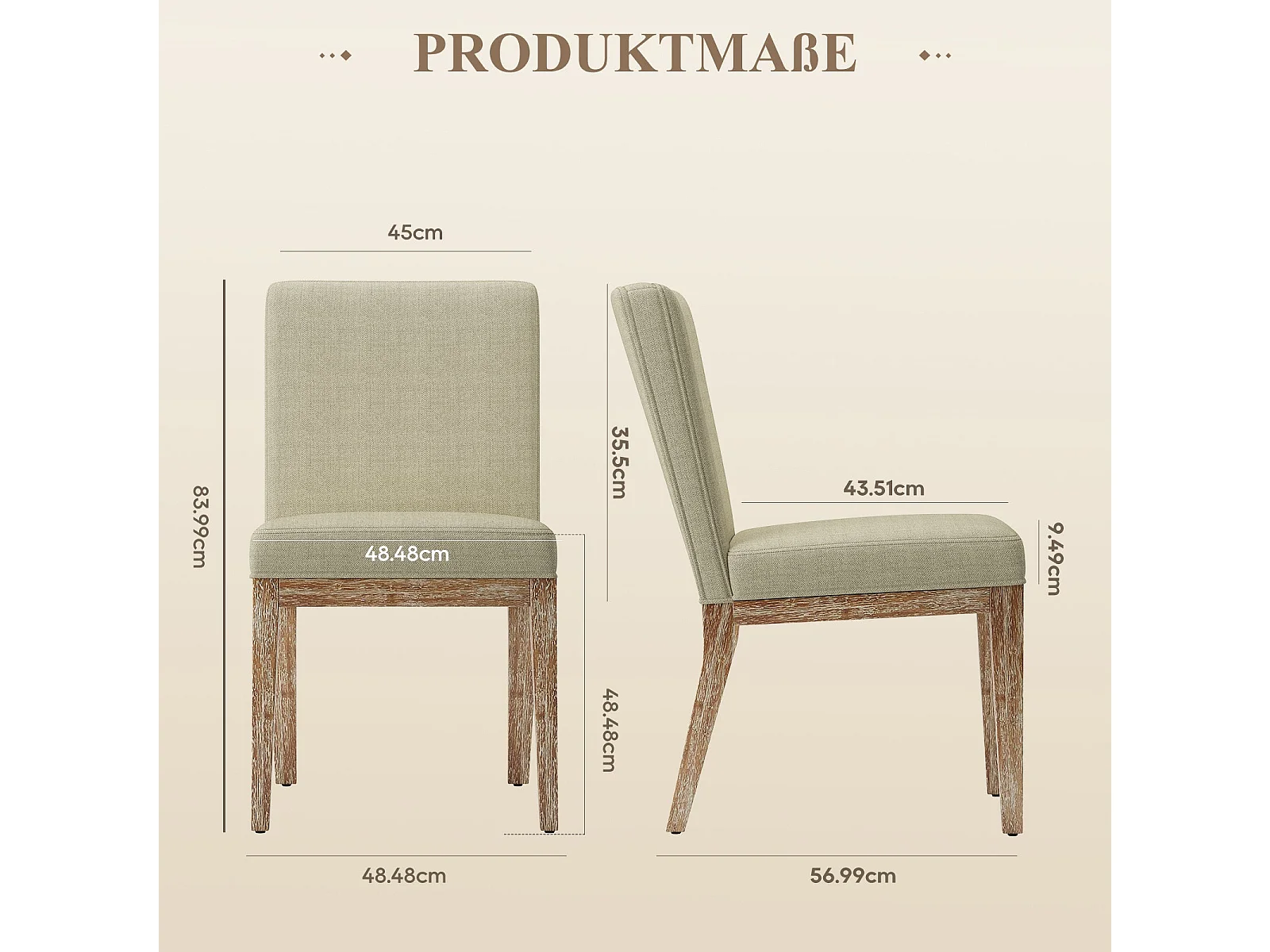 Lot de 2 chaises tissu beige