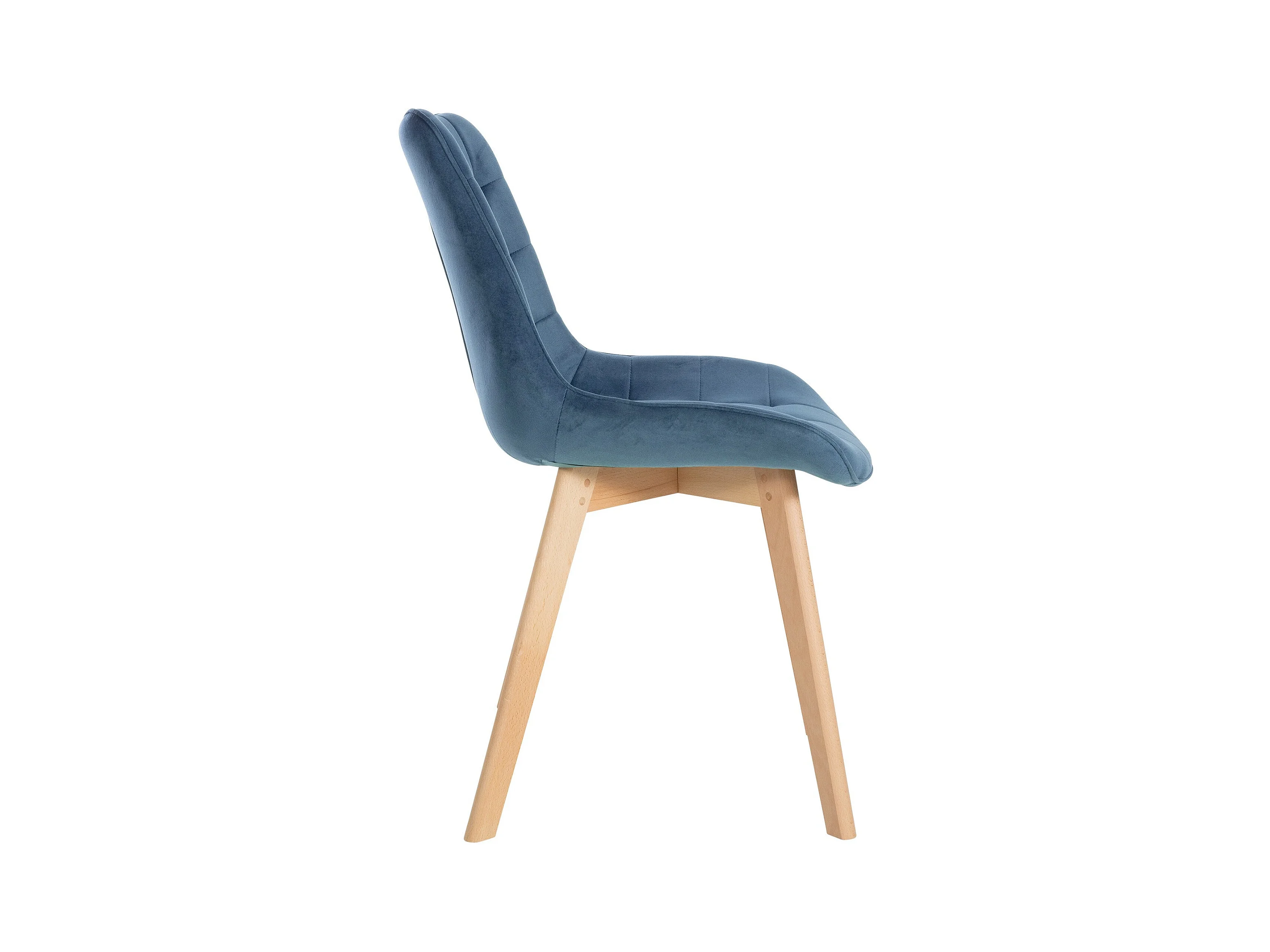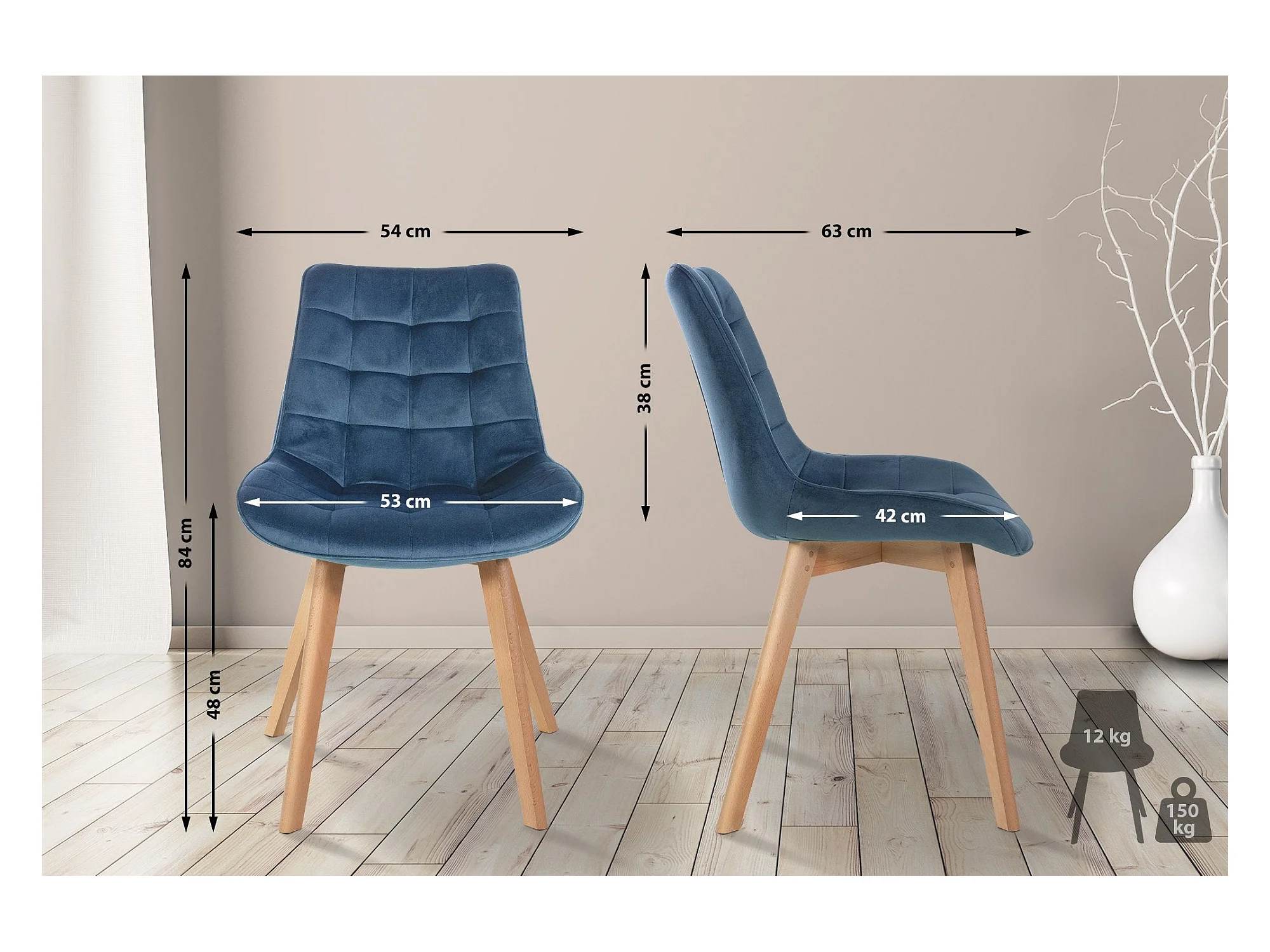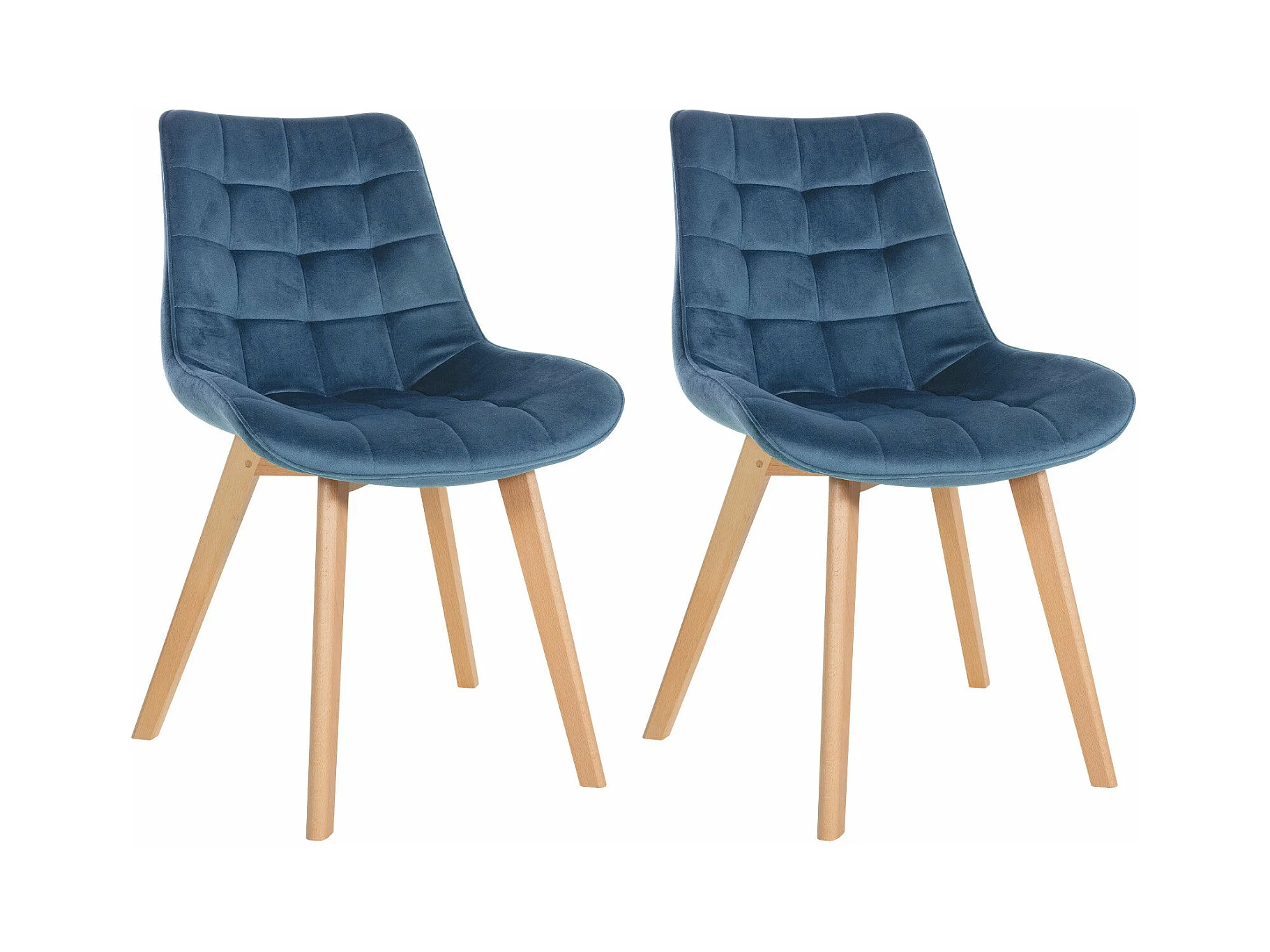 Lot de 2 chaises de salle à manger design scandinave coutures carrées en velours bleu pieds en bois clair 10_0001678