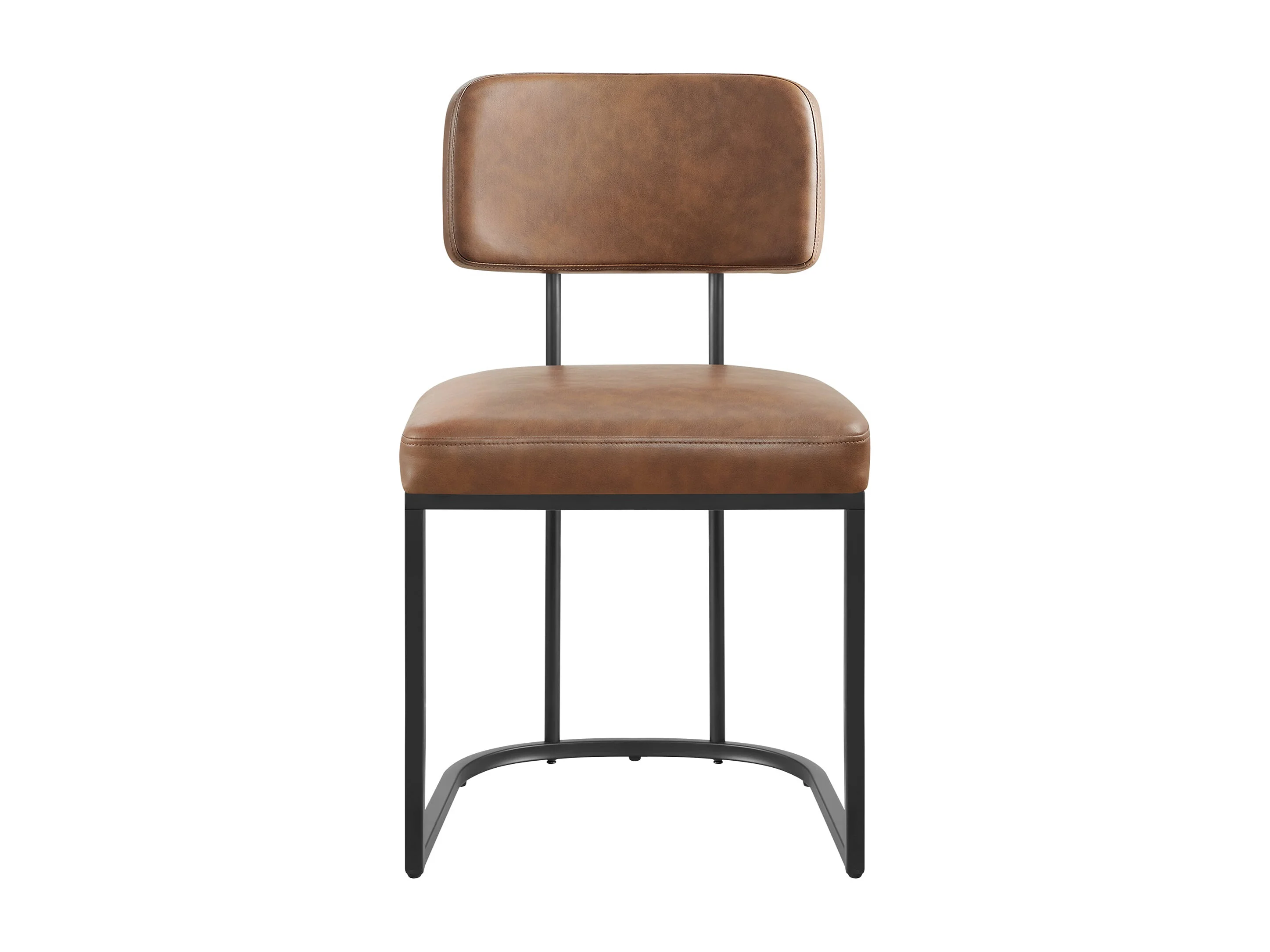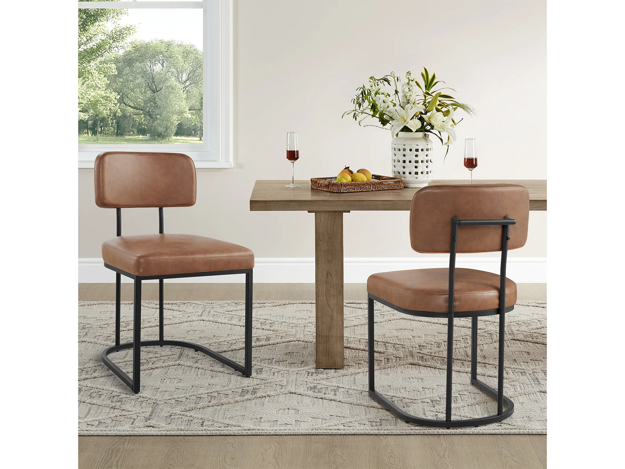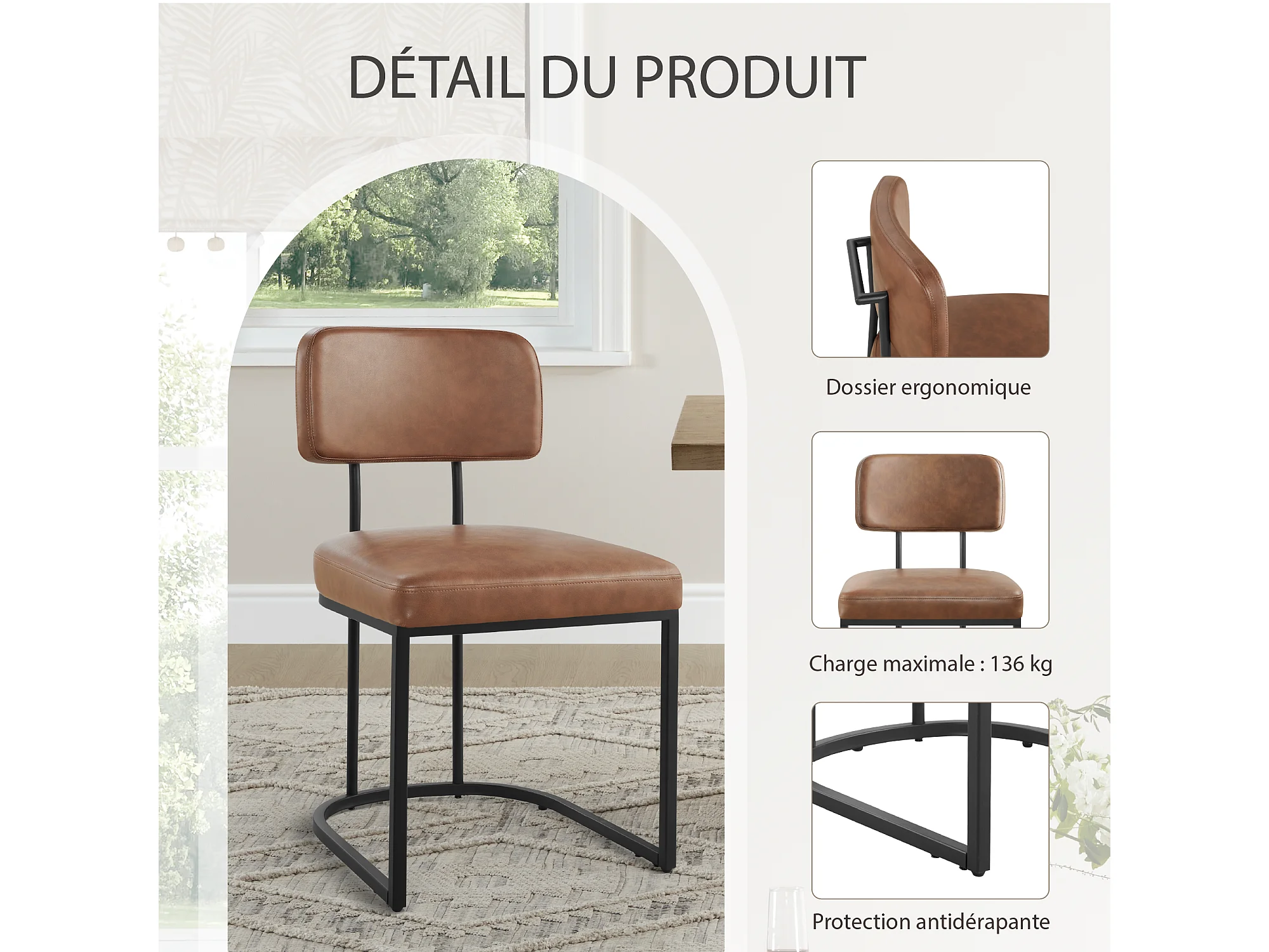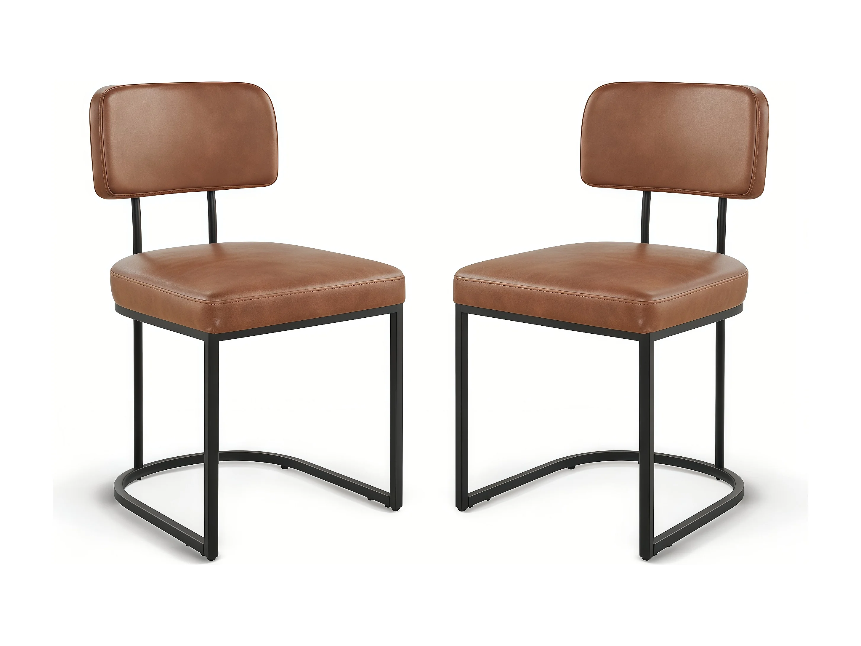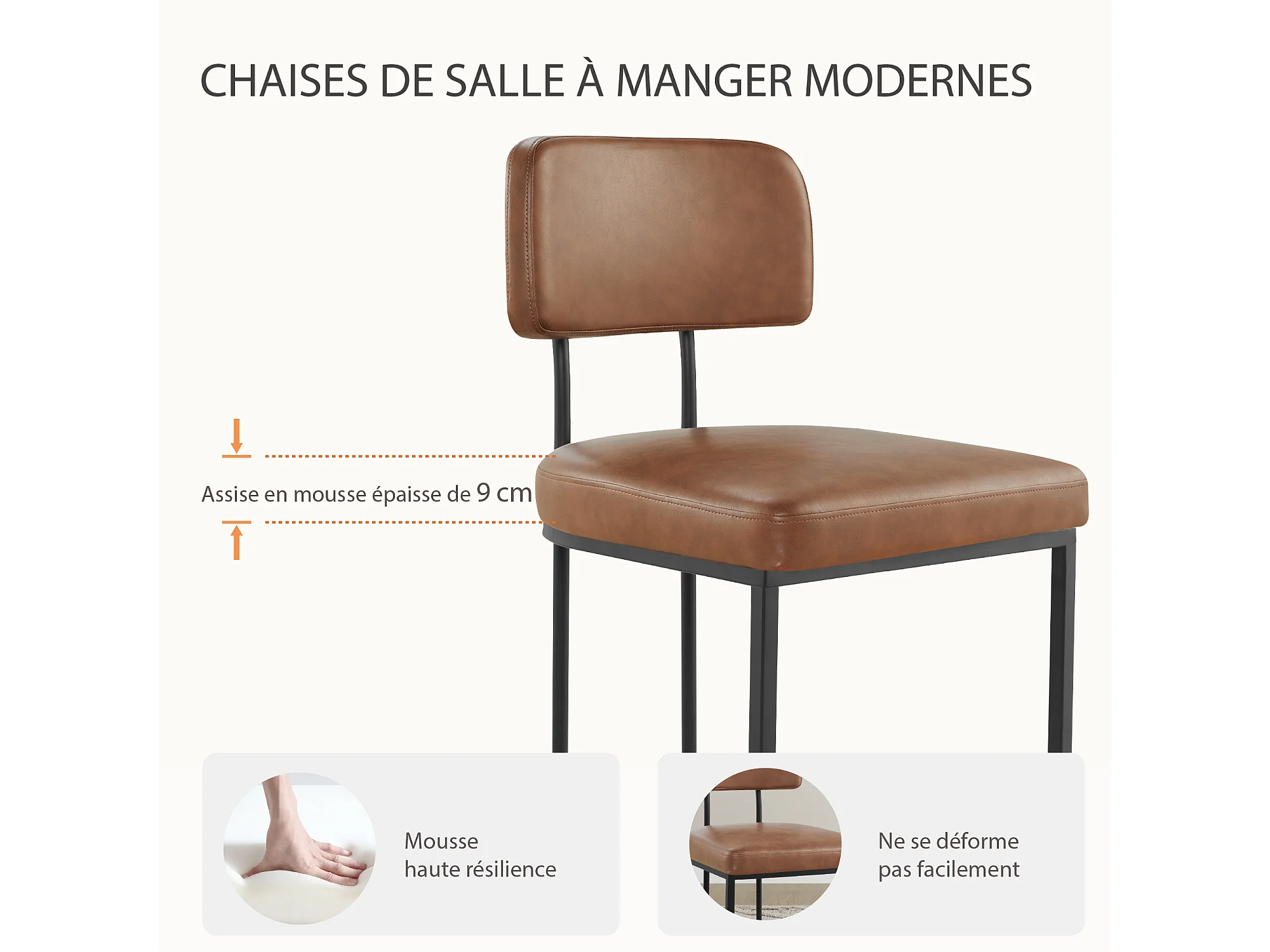 Lot de 2 chaises de salle à manger, Dossier rembourré, Modèle moderne Similicuir, Piètement métal