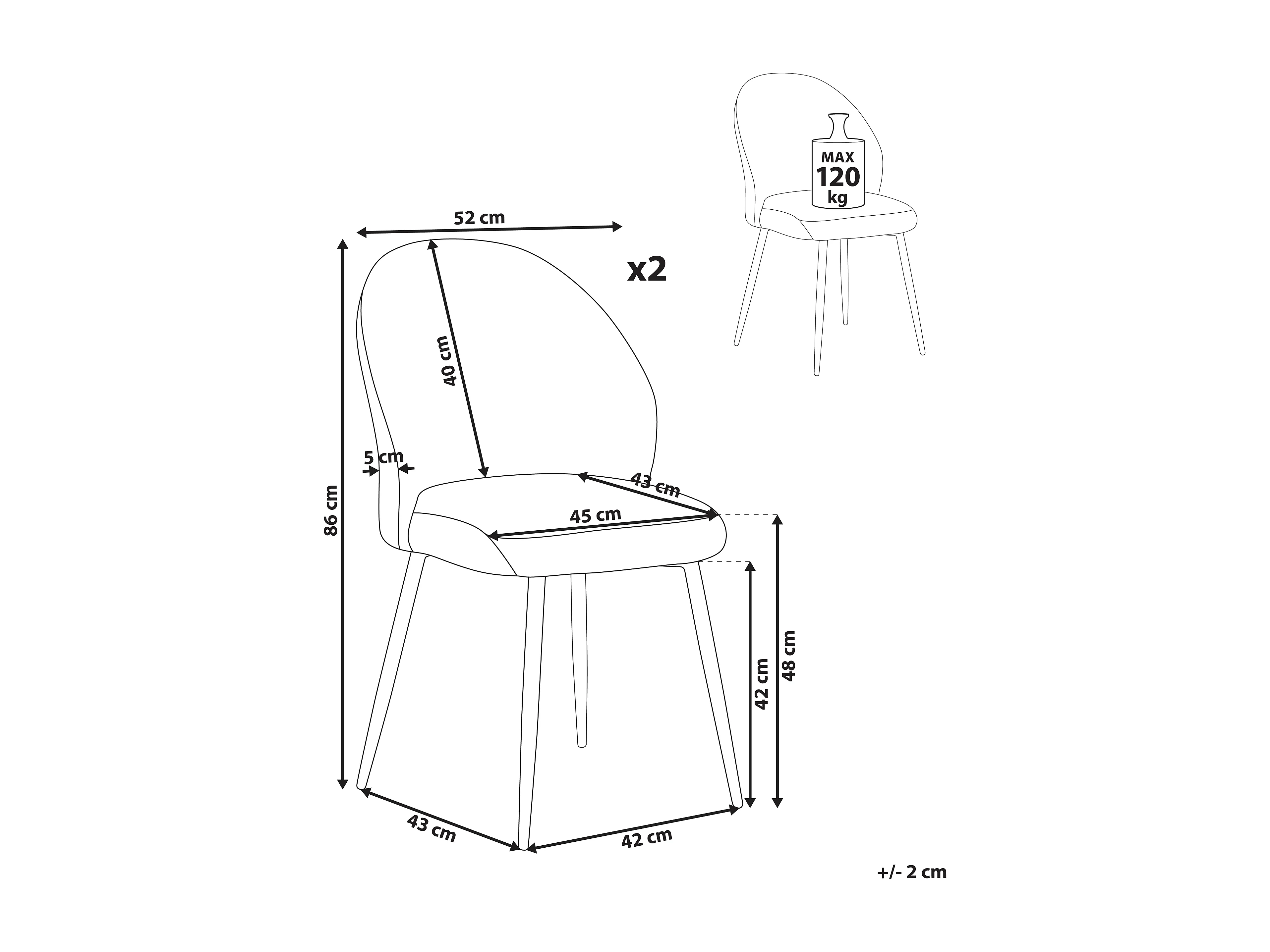 Lot de 2 chaises de salle à manger ELOY Velours côtelé Blanc cassé